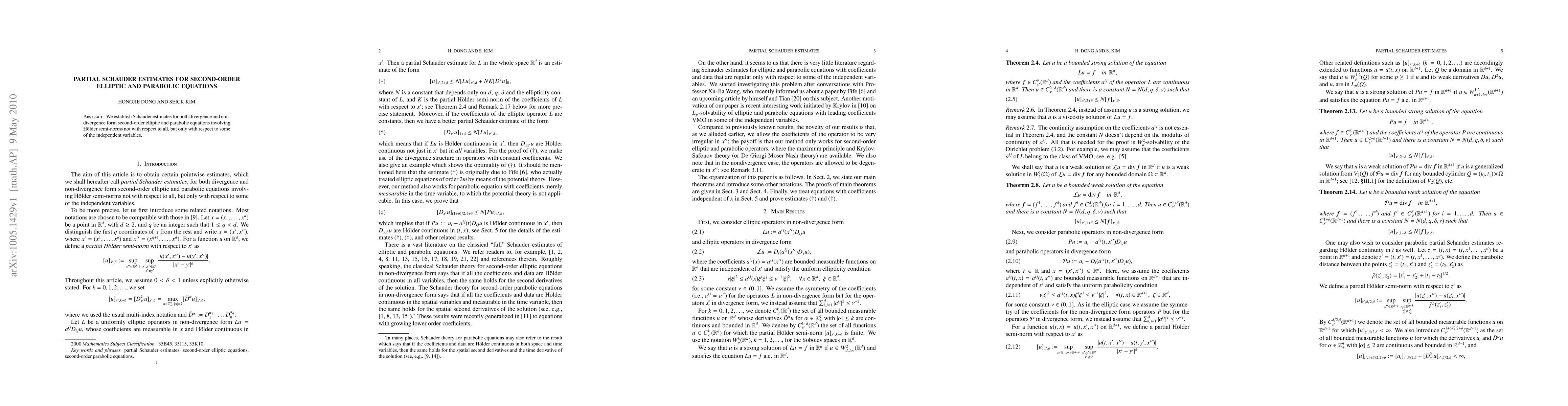 Summary: This paper establishes Schauder estimates for second-order elliptic and parabolic equations in both divergence and non-divergence forms, focusing on H\"older semi-norms with respect to selected independent variables. The results provide partial estimates rather than full norms.