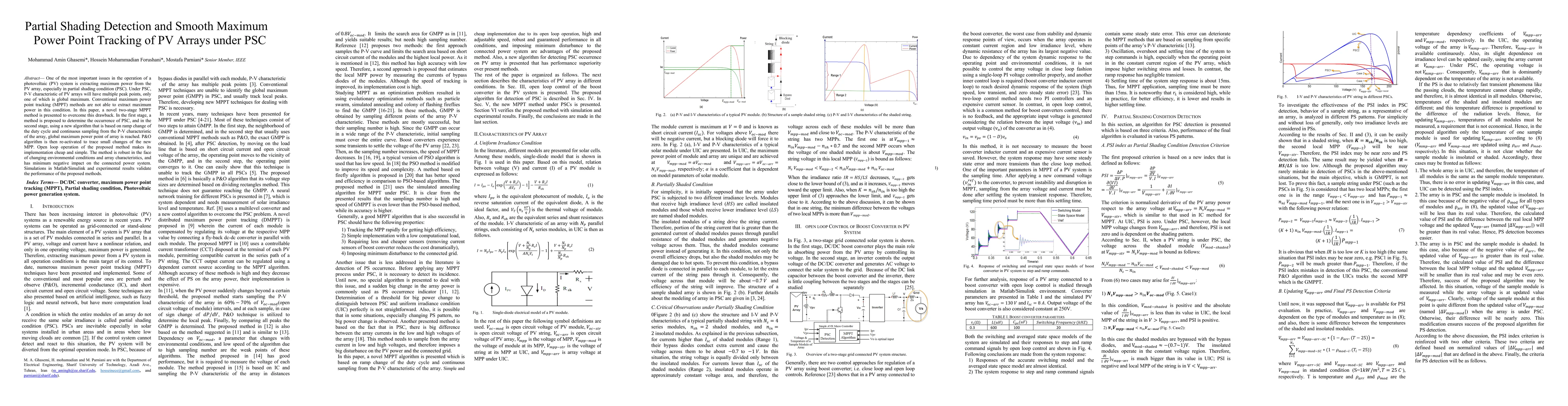 One of the most important issues in the operation of a photovoltaic (PV) system is extracting maximum power from the PV array, especially in partial shading condition (PSC). Under PSC, P-V characteristic of PV arrays will have multiple peak points, only one of which is global maximum. Conventional maximum power point tracking (MPPT) methods are not able to extract maximum power in this condition. In this paper, a novel two-stage MPPT method is presented to overcome this drawback. In the first stage, a method is proposed to determine the occurrence of PSC, and in the second stage, using a new algorithm that is based on ramp change of the duty cycle and continuous sampling from the P-V characteristic of the array, global maximum power point of array is reached. P&O algorithm is then re-activated to trace small changes of the new MPP. Open loop operation of the proposed method makes its implementation cheap and simple. The method is robust in the face of changing environmental conditions and array characteristics, and has minimum negative impact on the connected power system. Simulations in Matlab/Simulink and experimental results validate the performance of the proposed methods.