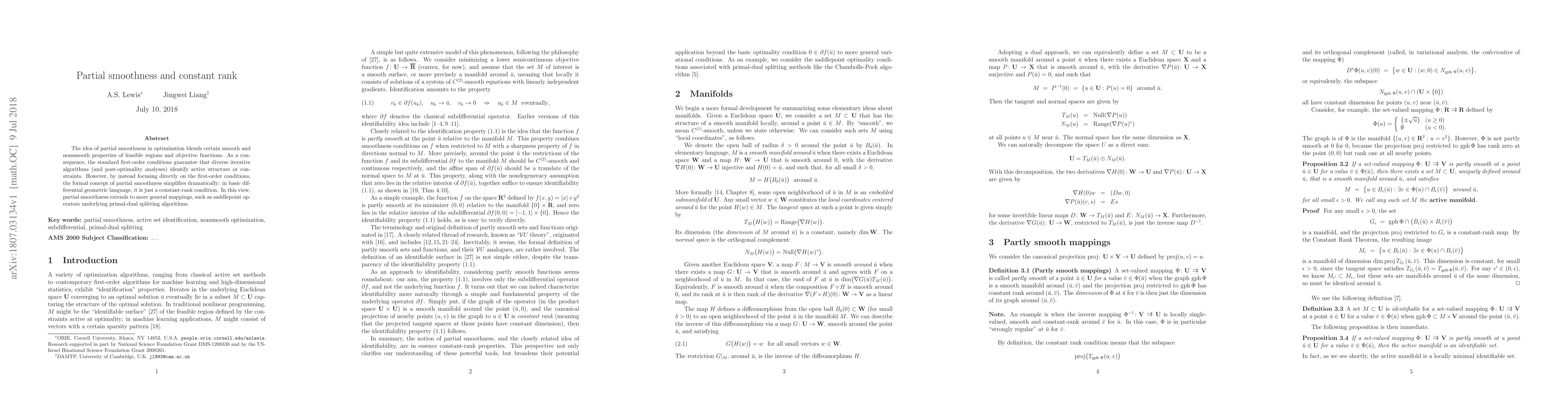 Researchers introduce a concept called partial smoothness in optimization, which simplifies first-order conditions into constant-rank conditions, making it applicable to more general mappings like saddlepoint operators.