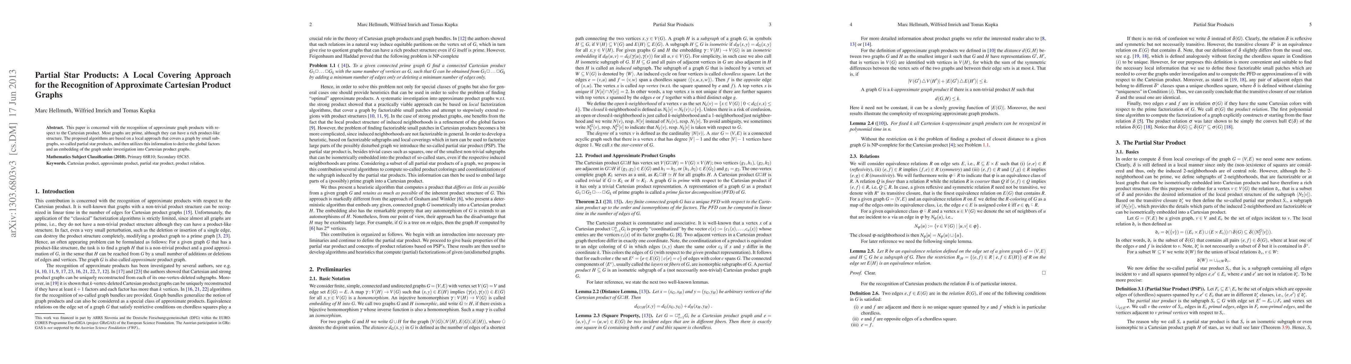 This paper proposes algorithms for recognizing approximate Cartesian product graphs using a local covering approach based on partial star products. It leverages small subgraphs to derive global factors and embeddings, revealing the product-like structure of prime graphs.