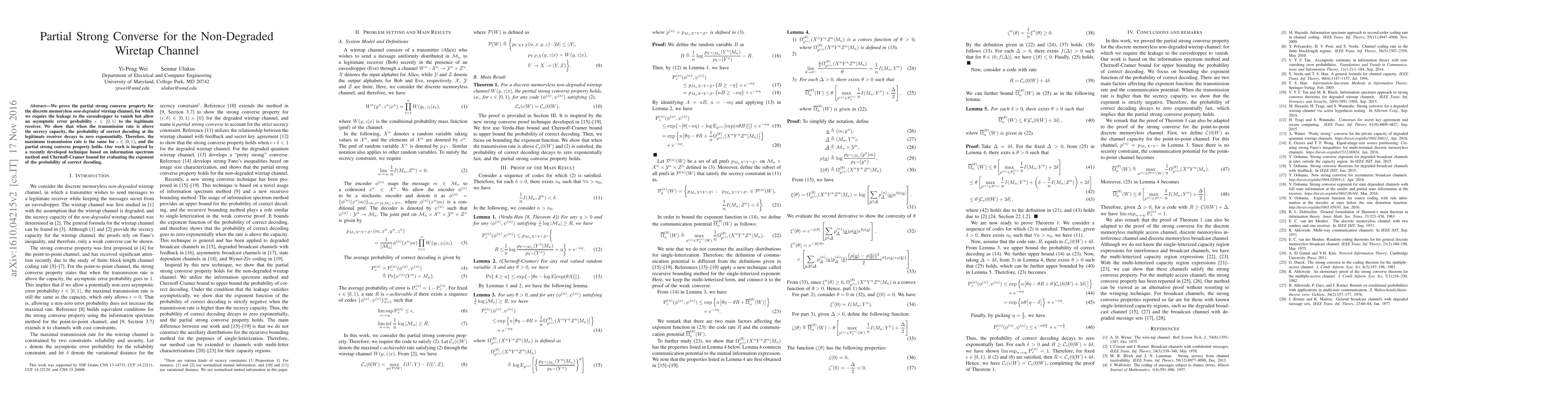 This paper proves the partial strong converse property for the non-degraded wiretap channel, demonstrating that above the secrecy capacity, the legitimate receiver's probability of correct decoding decays exponentially to zero. The study employs the information spectrum method and Chernoff-Cramer bound to evaluate decoding probabilities.