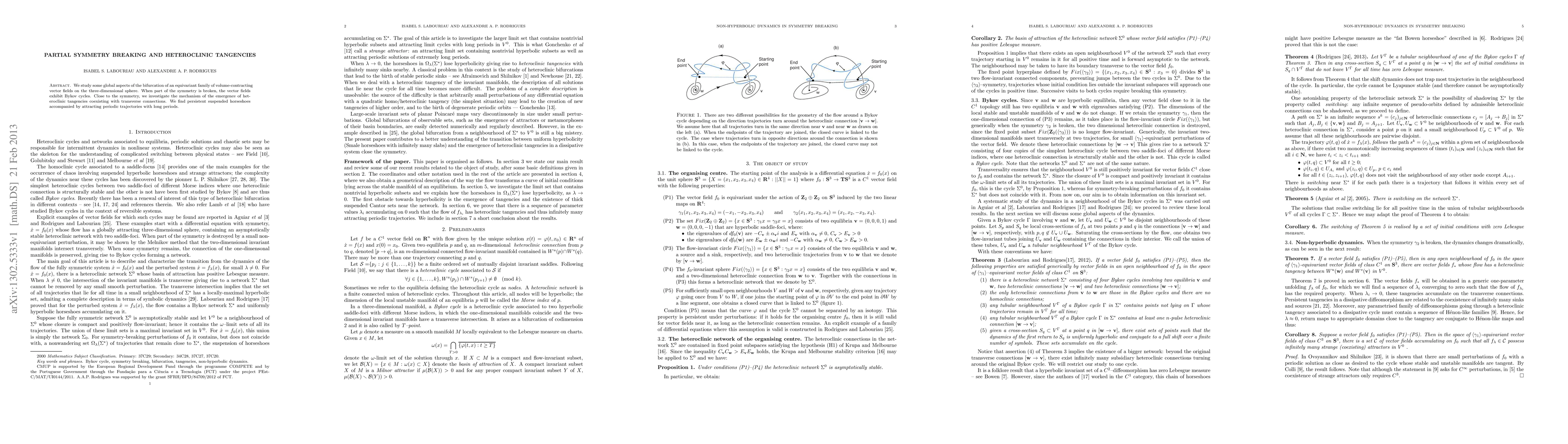 This paper investigates the global bifurcation dynamics of an equivariant family of vector fields on the three-dimensional sphere, focusing on partial symmetry breaking that leads to Bykov cycles. It reveals the emergence of heteroclinic tangencies and persistent suspended horseshoes alongside attracting periodic trajectories near the symmetry.