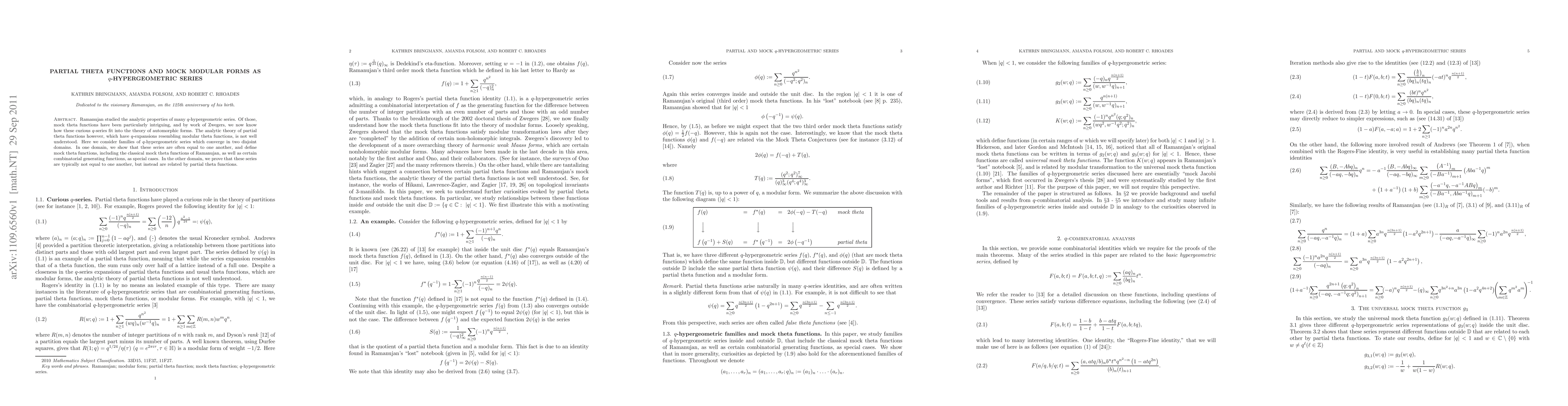 Ramanujan studied the analytic properties of many $q$-hypergeometric series. Of those, mock theta functions have been particularly intriguing, and by work of Zwegers, we now know how these curious $q$-series fit into the theory of automorphic forms. The analytic theory of partial theta functions however, which have $q$-expansions resembling modular theta functions, is not well understood. Here we consider families of $q$-hypergeometric series which converge in two disjoint domains. In one domain, we show that these series are often equal to one another, and define mock theta functions, including the classical mock theta functions of Ramanujan, as well as certain combinatorial generating functions, as special cases. In the other domain, we prove that these series are typically not equal to one another, but instead are related by partial theta functions.