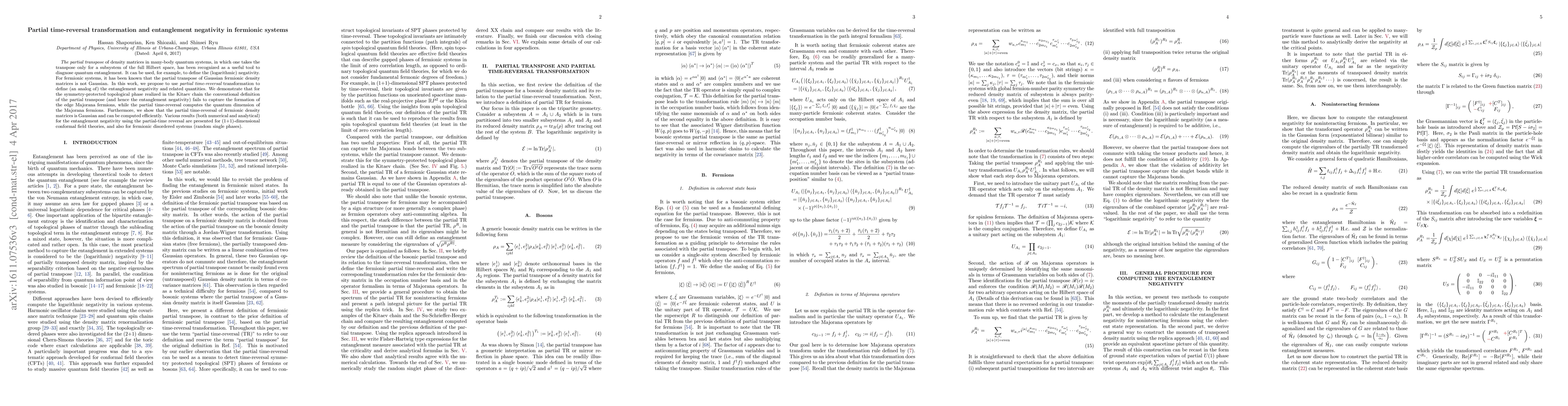 This paper proposes using partial time-reversal transformation to define an analog of entanglement negativity in fermionic systems, demonstrating its effectiveness in capturing edge Majorana fermions in symmetry-protected topological phases, unlike conventional partial transpose methods. It also shows that the partial time-reversal of fermionic density matrices remains Gaussian and is efficiently computable.