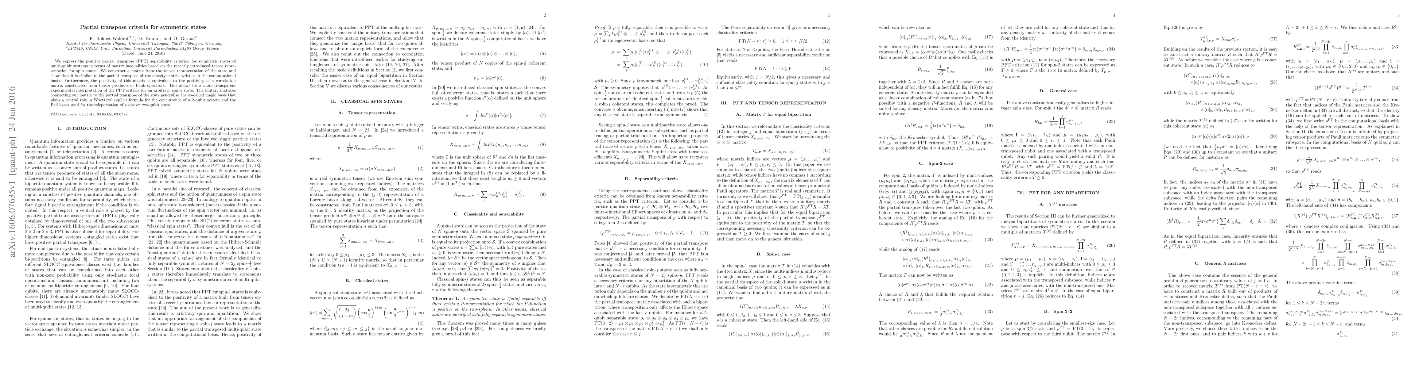 This paper presents a new matrix inequality approach to the positive partial transpose (PPT) separability criterion for symmetric multi-qubit states using tensor representations. It links the positivity of a constructed matrix to the positivity of a correlation matrix, facilitating clearer experimental interpretations of the PPT criteria.