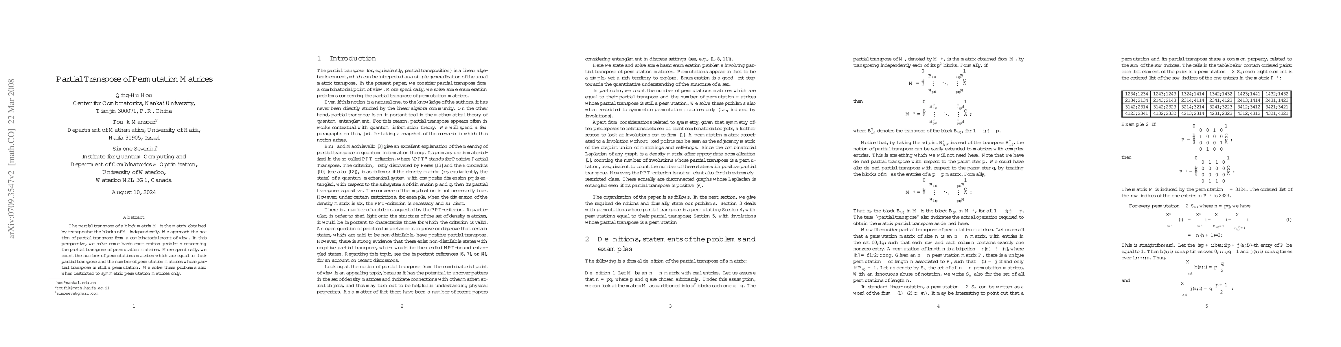 This paper explores the combinatorial aspects of the partial transpose of permutation matrices, counting those that remain unchanged and those whose partial transpose remains a permutation, with a special focus on symmetric permutation matrices.