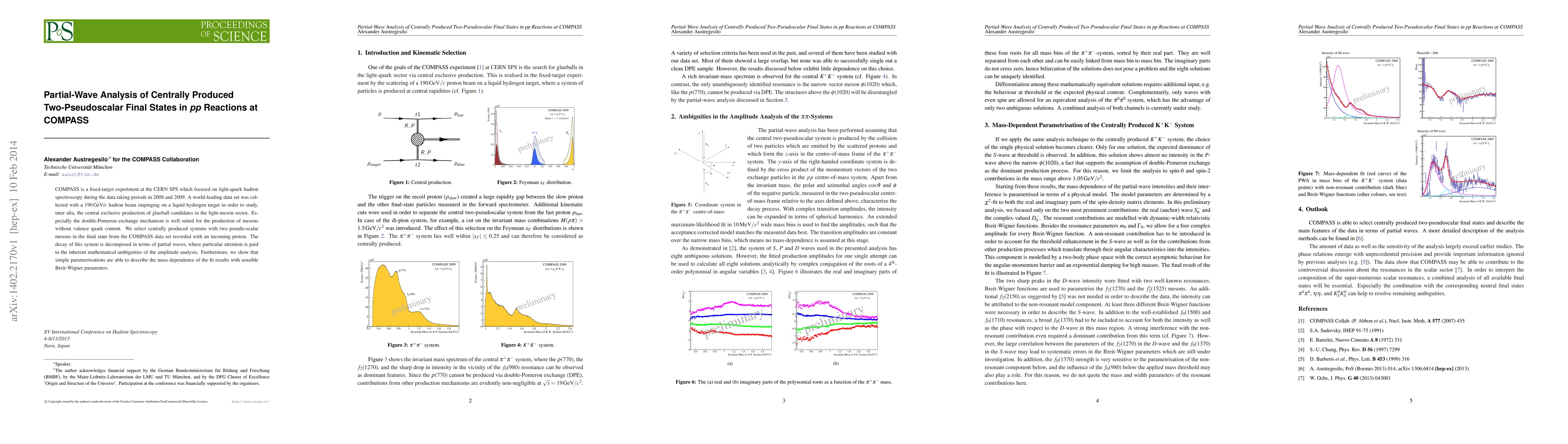COMPASS is a fixed-target experiment at the CERN SPS which focused on light-quark hadron spectroscopy during the data taking periods in 2008 and 2009. A world-leading data set was collected with a 190GeV/c hadron beam impinging on a liquid hydrogen target in order to study, inter alia, the central exclusive production of glueball candidates in the light-meson sector. Especially the double-Pomeron exchange mechanism is well suited for the production of mesons without valence quark content. We select centrally produced systems with two pseudo-scalar mesons in the final state from the COMPASS data set recorded with an incoming proton. The decay of this system is decomposed in terms of partial waves, where particular attention is paid to the inherent mathematical ambiguities of the amplitude analysis. Furthermore, we show that simple parametrisations are able to describe the mass dependence of the fit results with sensible Breit-Wigner parameters.