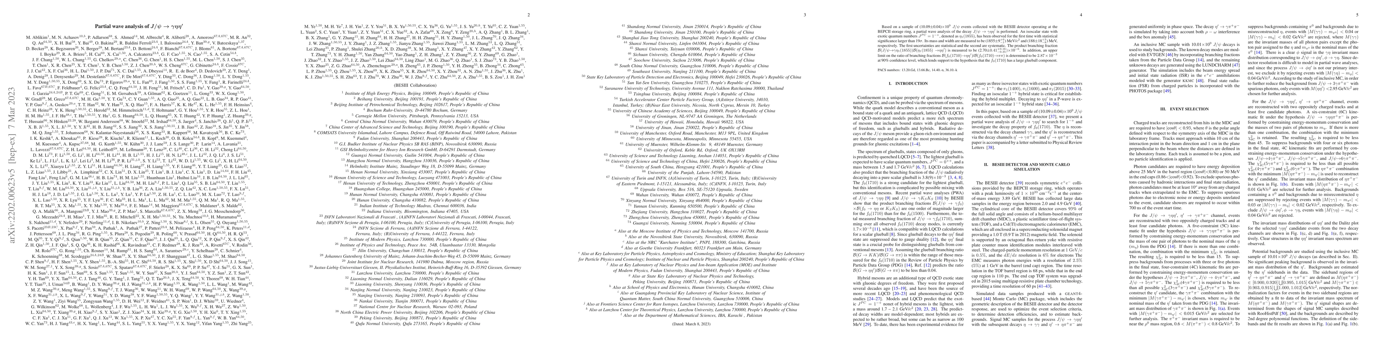 The BESIII experiment observed an exotic isoscalar state $\eta_1(1855)$ in the decay $J/\psi \rightarrow \gamma\eta\eta'$, with a mass of (1855$\pm$9$_{-1}^{+6}$) MeV/$c^{2}$ and a width of (188$\pm$18$_{-8}^{+3}$) MeV. This discovery supports the hypothesis that the $f_0(1710)$ has a significant glueball component.