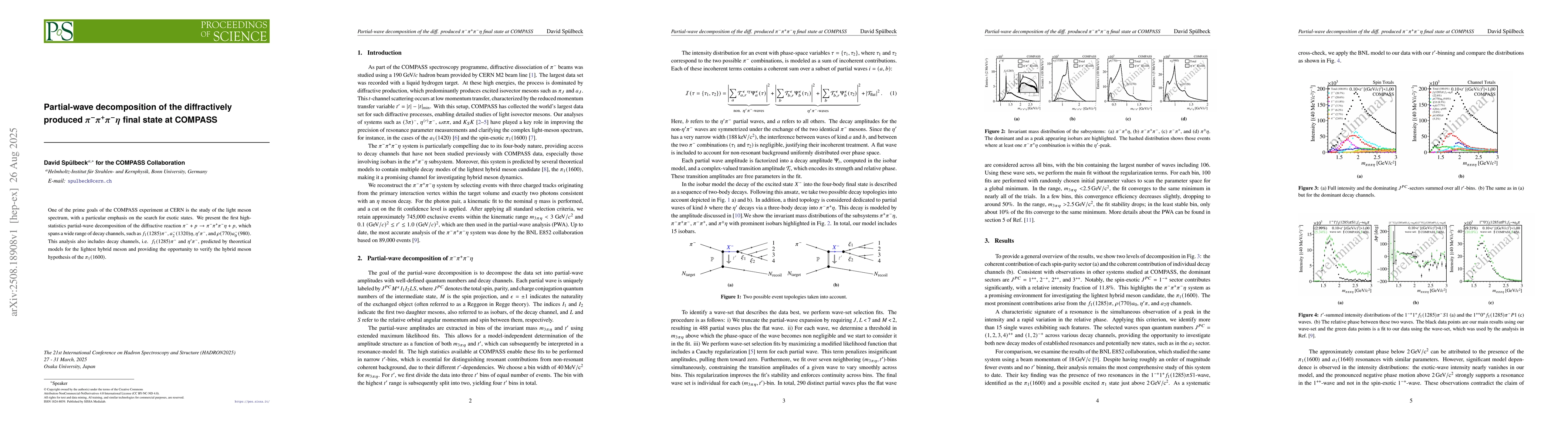 One of the prime goals of the COMPASS experiment at CERN is the study of the light meson spectrum, with a particular emphasis on the search for exotic states. We present the first high-statistics partial-wave decomposition of the diffractive reaction $\pi^-+p\to \pi^-\pi^+\pi^-\eta+p$, which spans a wide range of decay channels, such as $f_1(1285)\pi^-$, $a_2^-(1320)\eta$, $\eta^\prime\pi^-$, and $\rho(770)a_0^-(980)$. This analysis also includes decay channels, i.e. $f_1(1285)\pi^-$ and $\eta^\prime\pi^-$, predicted by theoretical models for the lightest hybrid meson and providing the opportunity to verify the hybrid meson hypothesis of the $\pi_1(1600)$.