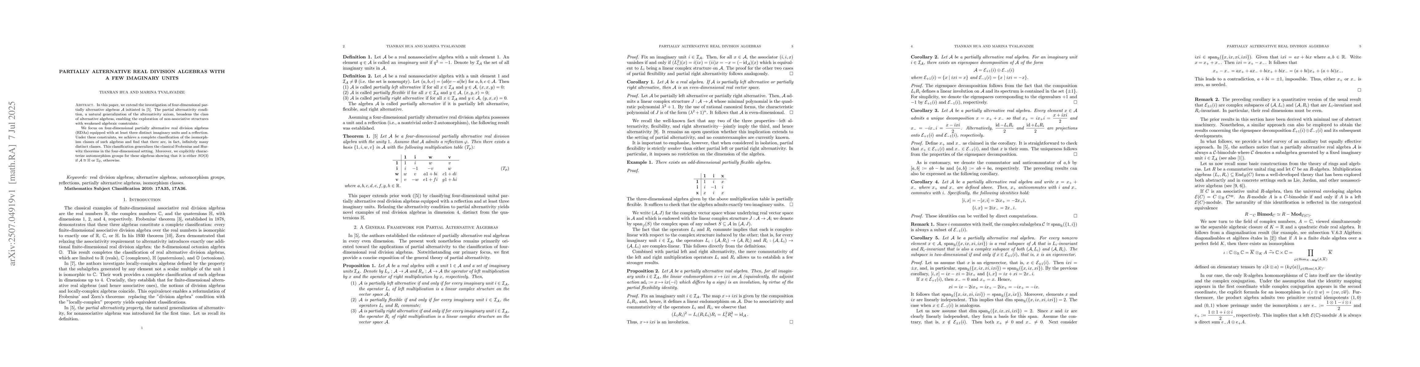 In this paper, we extend the investigation of four-dimensional partially alternative algebras $\mathcal A$ initiated in \cite{HNT}. The partial alternativity condition, a natural generalization of the alternativity axiom, broadens the class of alternative algebras, enabling the exploration of non-associative structures with weakened algebraic constraints. We focus on four-dimensional partially alternative real division algebras (RDAs) equipped with at least three distinct imaginary units and a reflection. Under these constraints, we achieve a complete classification of the isomorphism classes of such algebras and find that there are, in fact, infinitely many distinct classes. This classification generalizes the classical Frobenius and Hurwitz theorems in the four-dimensional setting. Moreover, we explicitly characterize automorphism groups for these algebras showing that it is either $SO(3)$ if $\mathcal A\cong \mathbb H$ or $\mathbb Z_2$, otherwise.