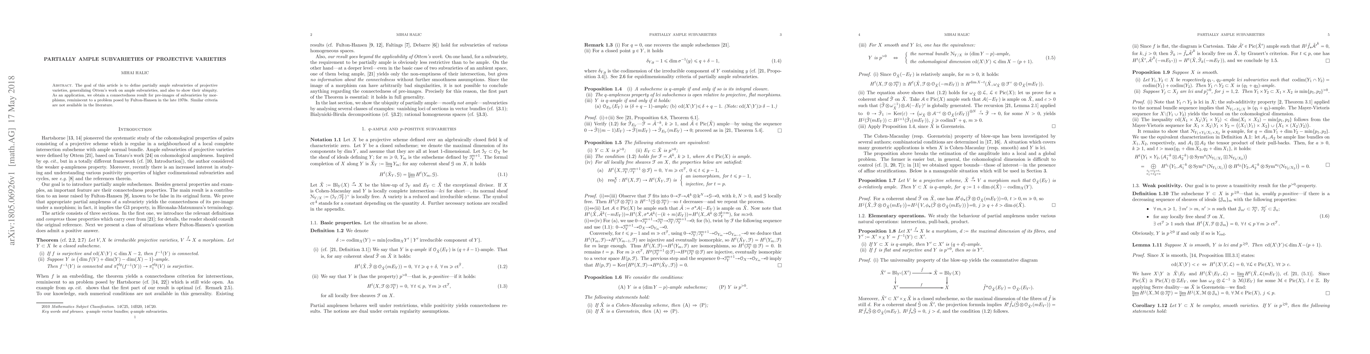Summary: This paper introduces the concept of partially ample subvarieties within projective varieties, extending Ottem's work on ample subvarieties, and demonstrates their prevalence. The research also yields a new connectedness result for pre-images of subvarieties under morphisms, addressing a problem initially posed by Fulton-Hansen.