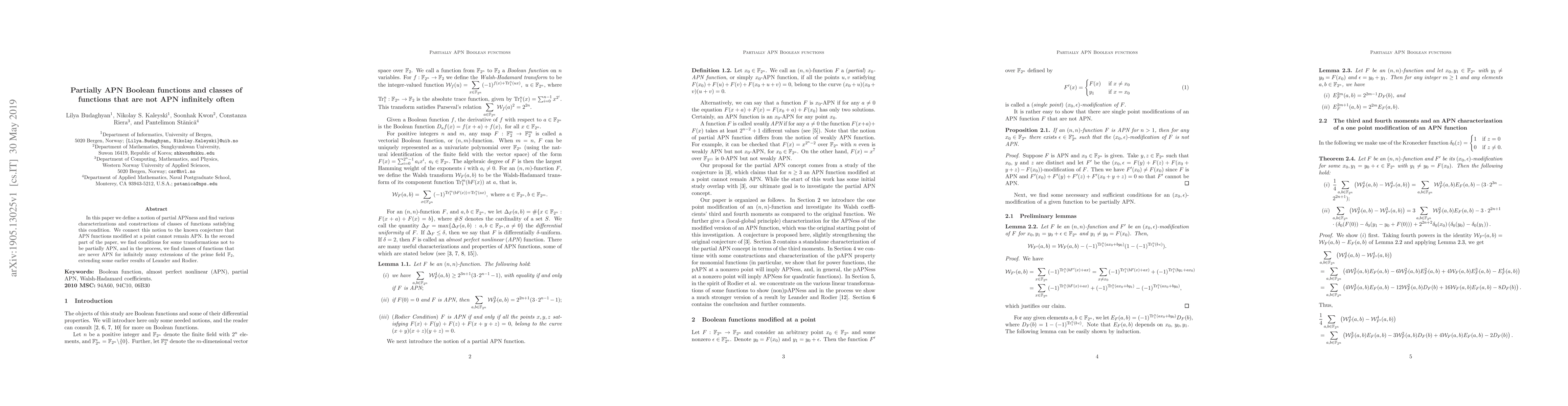 In this paper we define a notion of partial APNness and find various characterizations and constructions of classes of functions satisfying this condition. We connect this notion to the known conjecture that APN functions modified at a point cannot remain APN. In the second part of the paper, we find conditions for some transformations not to be partially APN, and in the process, we find classes of functions that are never APN for infinitely many extensions of the prime field $\F_2$, extending some earlier results of Leander and Rodier.