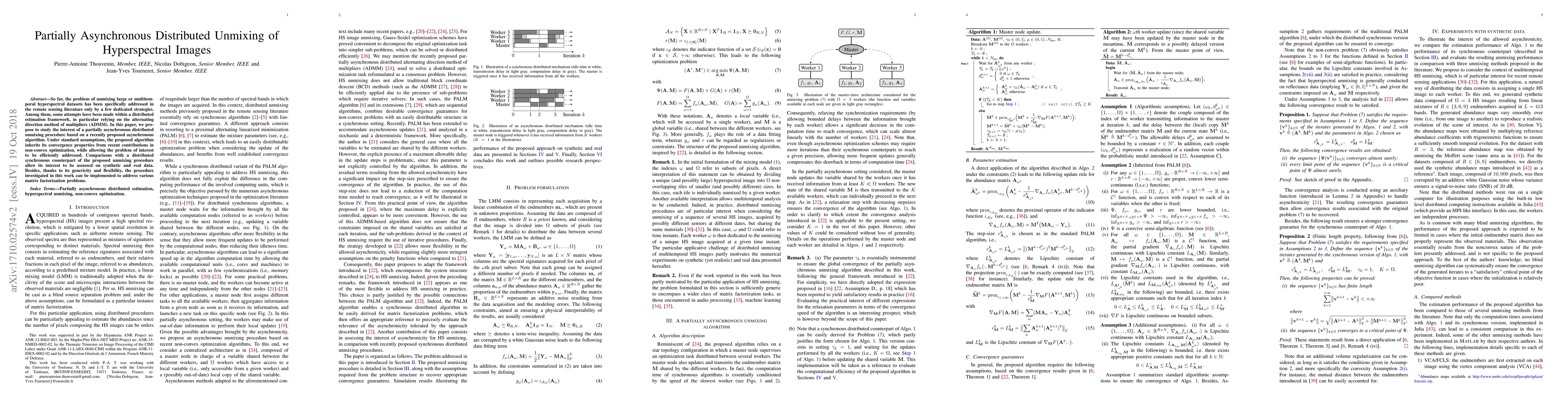Researchers propose a new algorithm for unmixing hyperspectral images in a distributed setting, leveraging recent advances in non-convex optimization to achieve efficient convergence. The approach offers genericity and flexibility, making it applicable to various matrix factorization problems.