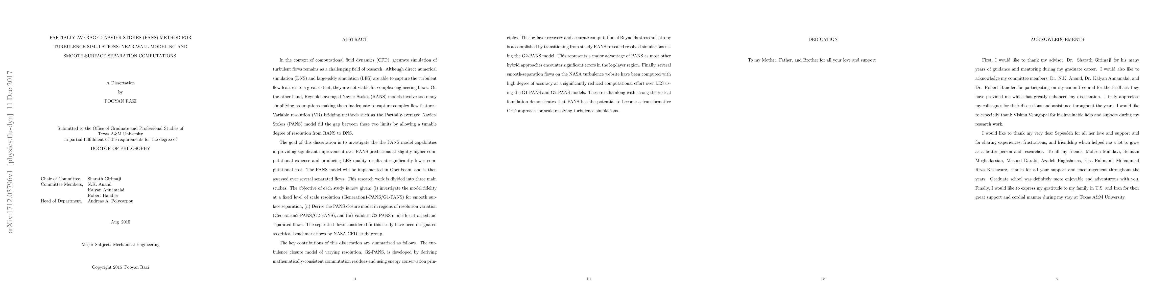 The goal of this dissertation is to investigate the PANS model capabilities in providing significant improvement over RANS predictions at slightly higher computational expense and producing LES quality results at significantly lower computational cost. The objectives of this study are: (i) investigate the model fidelity at a fixed level of scale resolution (Generation1-PANS/G1-PANS) for smooth surface separation, (ii) Derive the PANS closure model in regions of resolution variation (Generation2-PANS/G2-PANS), and (iii) Validate G2-PANS model for attached and separated flows. The separated flows considered in this study have been designated as critical benchmark flows by NASA CFD study group. The key contributions of this dissertation are summarized as follows. The turbulence closure model of varying resolution, G2-PANS, is developed by deriving mathematically-consistent commutation residues and using energy conservation principles. The log-layer recovery and accurate computation of Reynolds stress anisotropy is accomplished by transitioning from steady RANS to scaled resolved simulations using the G2-PANS model. Finally, several smooth-separation flows on the NASA turbulence website have been computed with high degree of accuracy at a significantly reduced computational effort over LES using the G1-PANS and G2-PANS models.