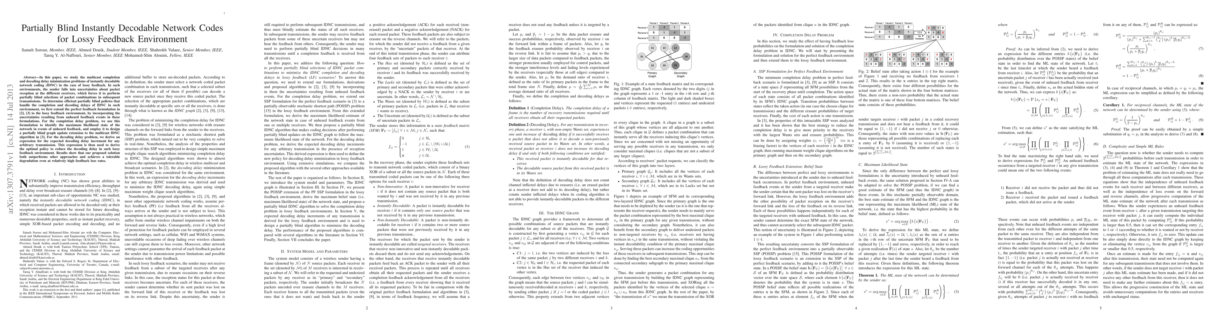 This paper proposes partially blind network coding strategies to minimize multicast completion and decoding delays in environments with lossy feedback, where the sender lacks information on packet reception. It extends existing perfect feedback models to account for uncertainties and introduces a new graph update method and optimal policy to achieve better performance even under high feedback loss.