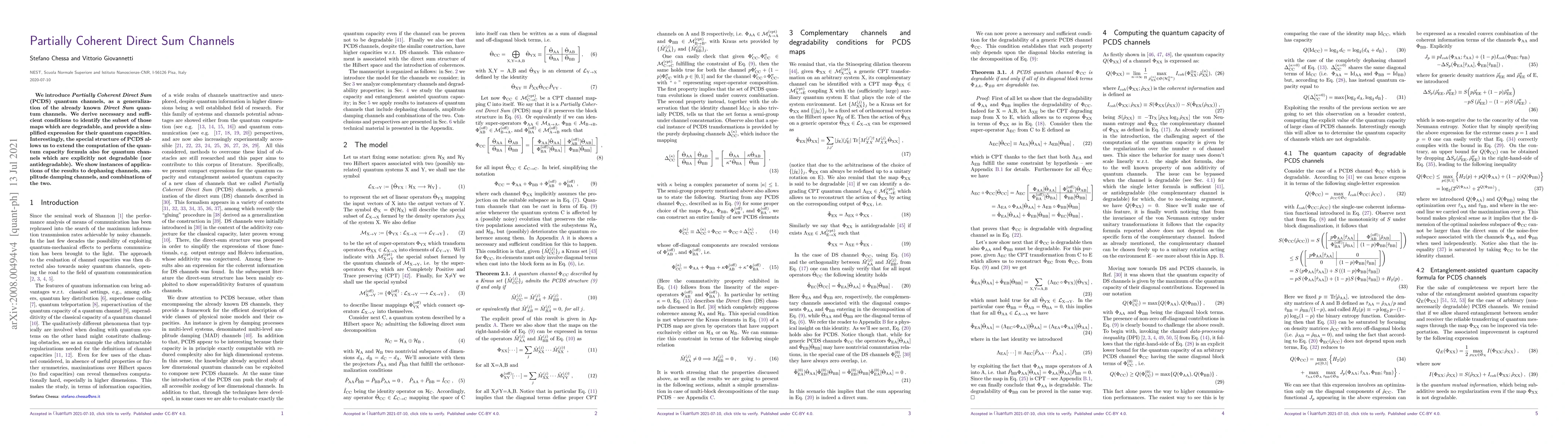This paper generalizes Direct Sum quantum channels to Partially Coherent Direct Sum channels, deriving conditions for degradability and simplifying the computation of quantum capacities, even for non-degradable channels. Applications to dephasing and amplitude damping channels are demonstrated.