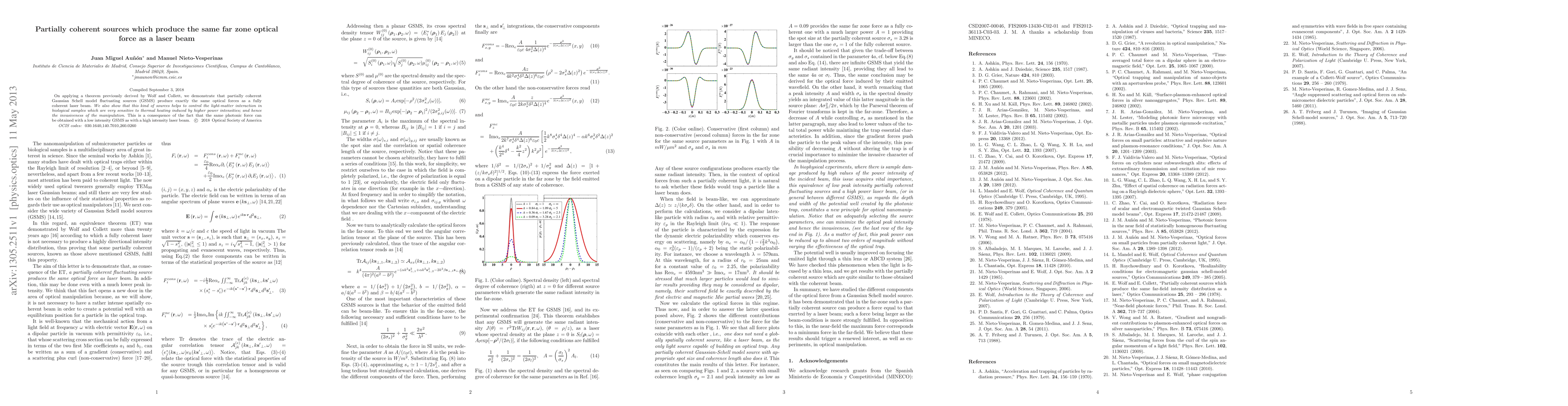 This paper demonstrates that partially coherent Gaussian Schell model fluctuating sources (GSMS) generate the same optical forces as a laser beam, using a theorem by Wolf and Collett. It also highlights GSMS's potential to reduce invasiveness in light-matter interactions in biological samples by achieving similar photonic forces at lower intensities.