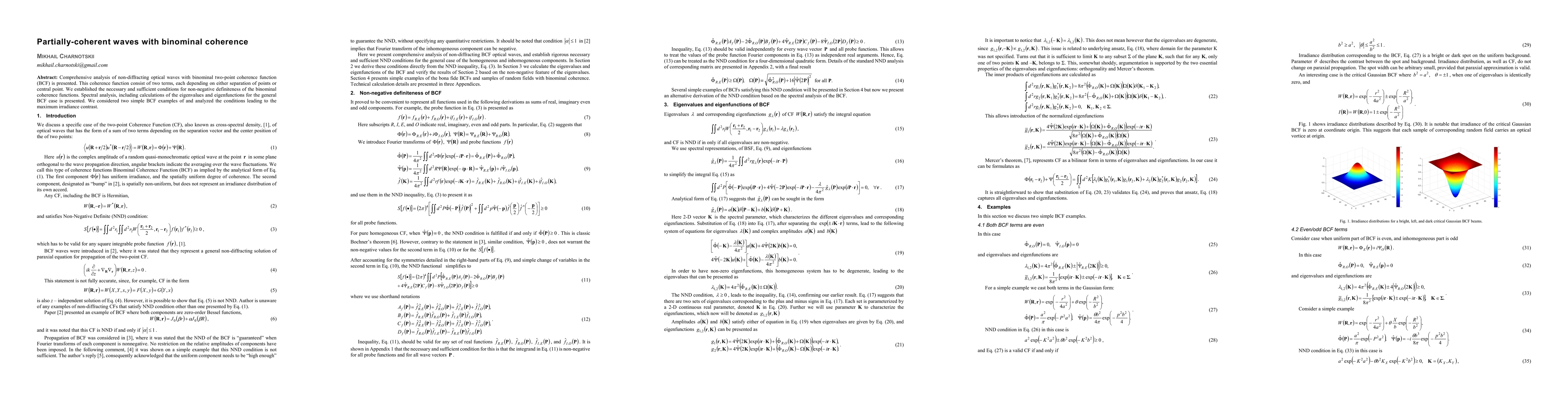 Researchers analyzed non-diffracting optical waves with a new coherence function that depends on point separation and central points, establishing conditions for its non-negative definiteness and maximum irradiance contrast.
