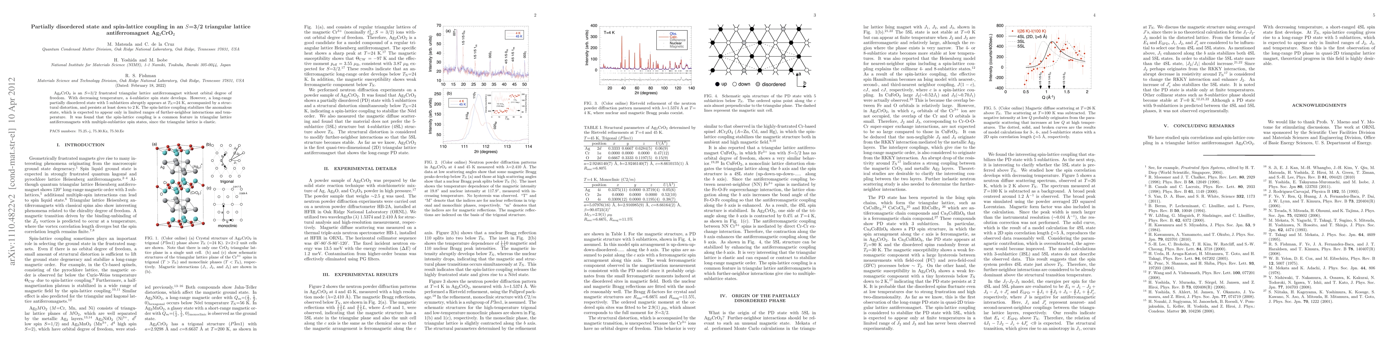 This study investigates the unusual magnetic behavior of the S=3/2 triangular lattice antiferromagnet Ag2CrO2, revealing a long-range partially disordered state at low temperatures due to spin-lattice coupling, which stabilizes this state despite its unexpected complexity. The spin-lattice coupling is identified as a common phenomenon in such triangular lattice systems with multiple-sublattice spin states.