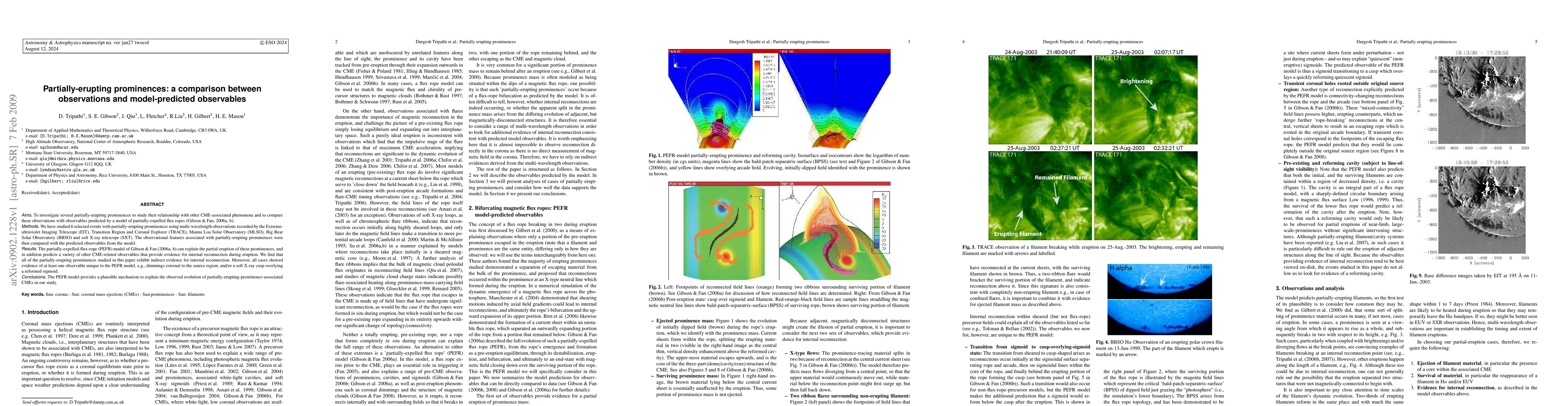 This paper investigates six partially-erupting prominences using multi-wavelength observations and compares them with the Gibson & Fan model of partially-expelled flux ropes. The study finds that the model successfully explains the observed phenomena and predicts additional CME-related observables, supporting internal reconnection during the eruption.