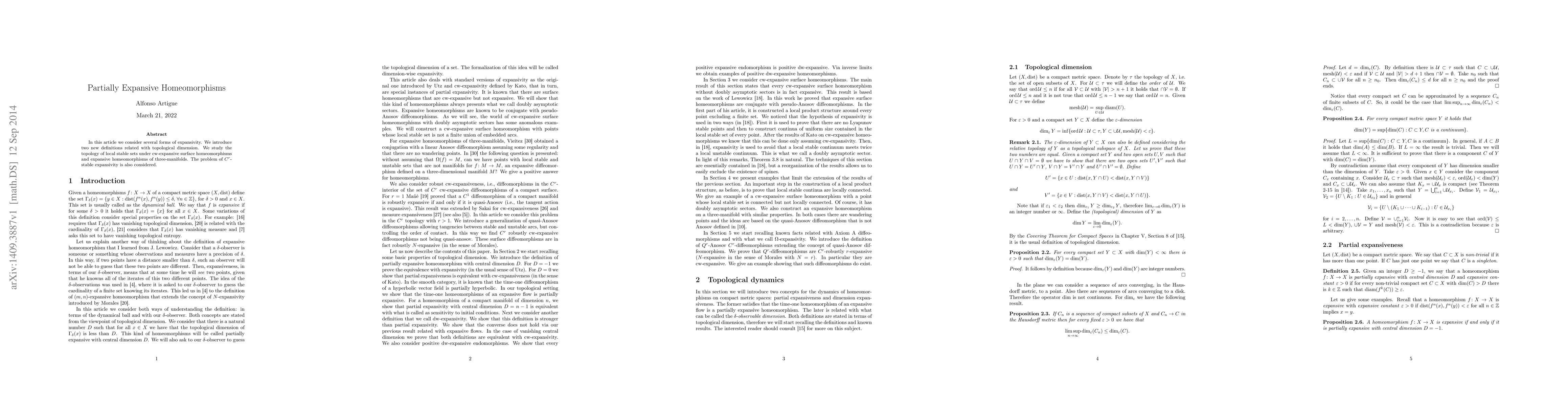 This paper introduces new definitions of expansivity related to topological dimension and explores the topology of local stable sets under cw-expansive surface homeomorphisms and expansive homeomorphisms of three-manifolds. It also examines the issue of $C^r$-stable expansivity.