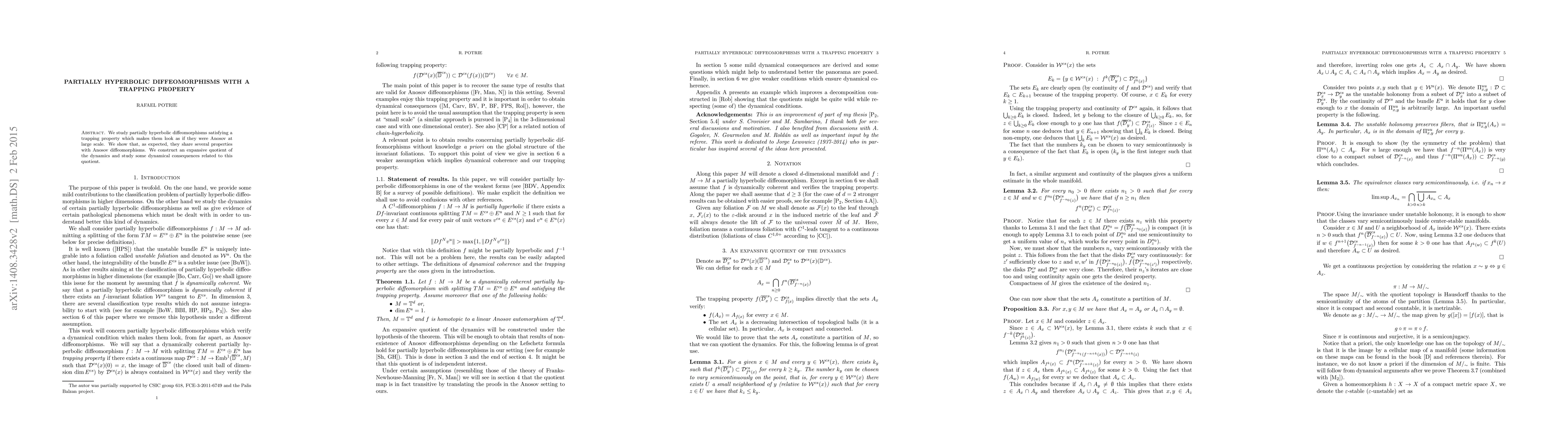 This paper investigates partially hyperbolic diffeomorphisms with a trapping property, demonstrating their resemblance to Anosov diffeomorphisms at large scales. The authors construct an expansive quotient of the dynamics and explore its dynamical consequences.