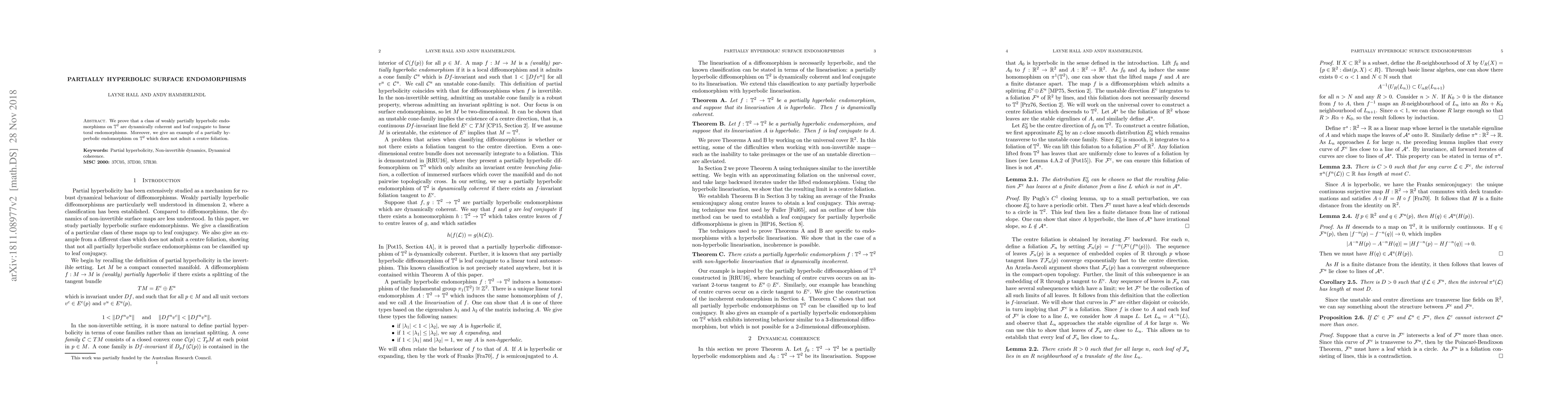 Summary: The paper demonstrates that certain weakly partially hyperbolic endomorphisms on the 2-torus are dynamically coherent and equivalent to linear toral endomorphisms. It also presents an example of a partially hyperbolic endomorphism on the 2-torus lacking a centre foliation.