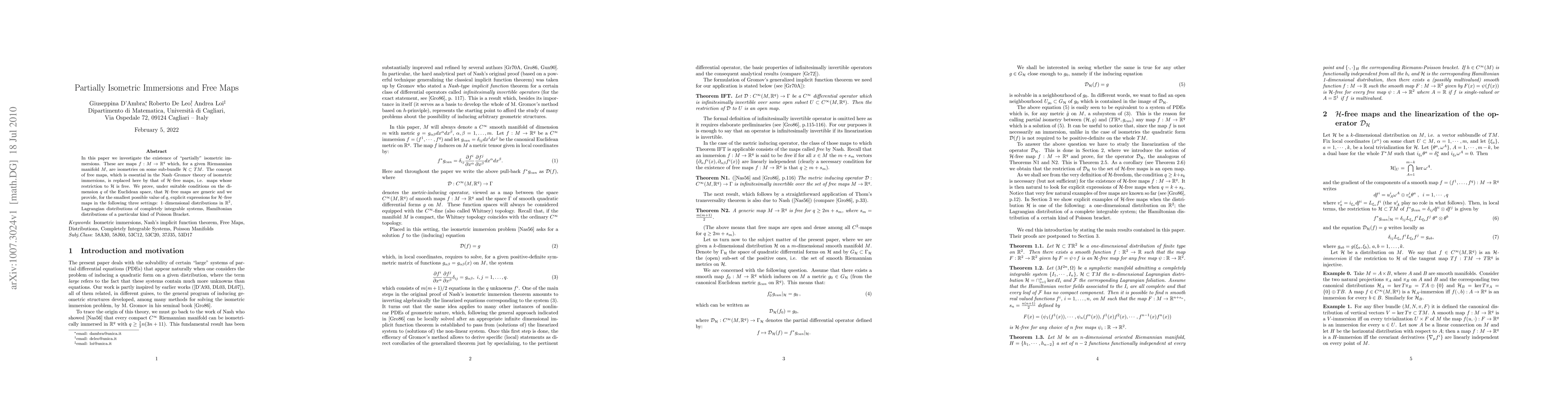 In this paper we investigate the existence of ``partially'' isometric immersions. These are maps f:M->R^q which, for a given Riemannian manifold M, are isometries on some sub-bundle H of TM. The concept of free maps, which is essential in the Nash--Gromov theory of isometric immersions, is replaced here by that of H-free maps, i.e. maps whose restriction to H is free. We prove, under suitable conditions on the dimension q of the Euclidean space, that H-free maps are generic and we provide, for the smallest possible value of q, explicit expressions for H-free maps in the following three settings: 1-dimensional distributions in R^2, Lagrangian distributions of completely integrable systems, Hamiltonian distributions of a particular kind of Poisson Bracket.