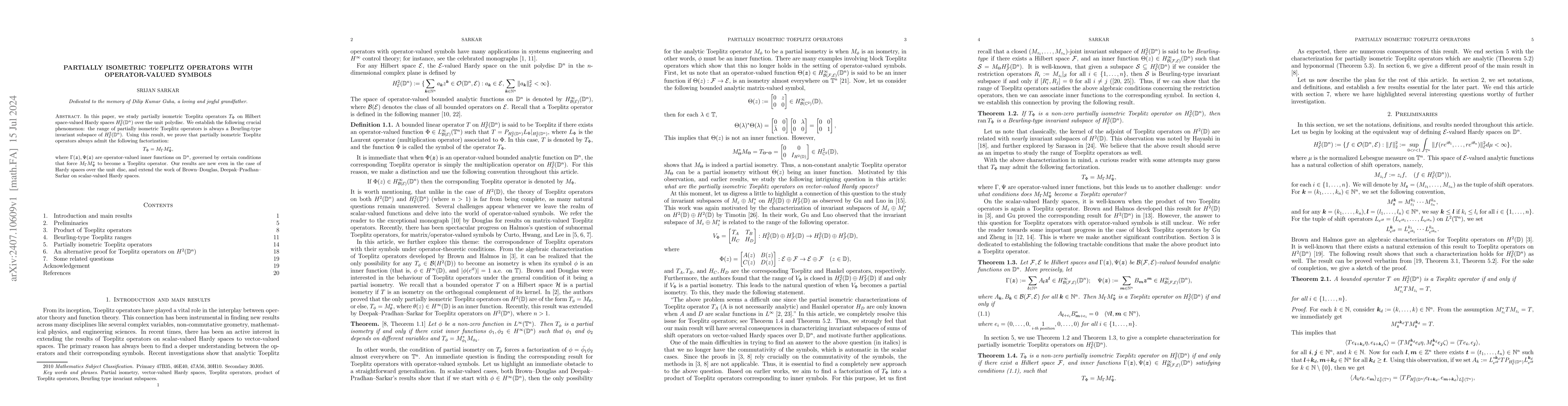 This paper investigates partially isometric Toeplitz operators on Hilbert space-valued Hardy spaces, proving their range is a Beurling-type invariant subspace. It establishes a novel factorization for these operators as a product of two operator-valued inner functions.