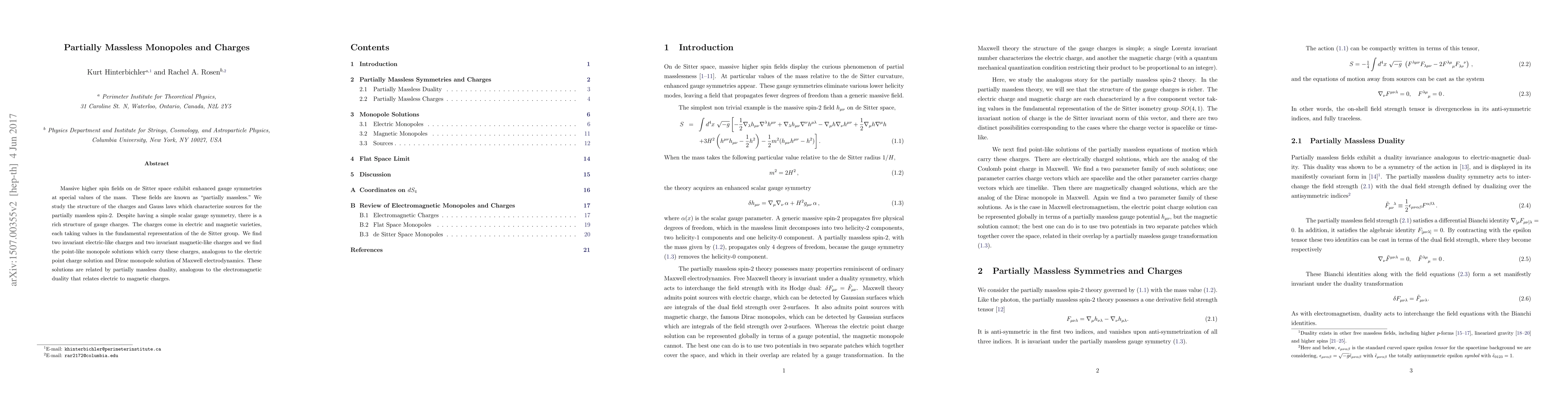 This paper investigates the enhanced gauge symmetries of massive higher spin fields in de Sitter space, termed "partially massless," focusing on spin-2 fields. It reveals a rich structure of electric and magnetic gauge charges, identifying two invariant electric-like and two magnetic-like charges, and discovers point-like monopole solutions analogous to electric and magnetic charges in electrodynamics.