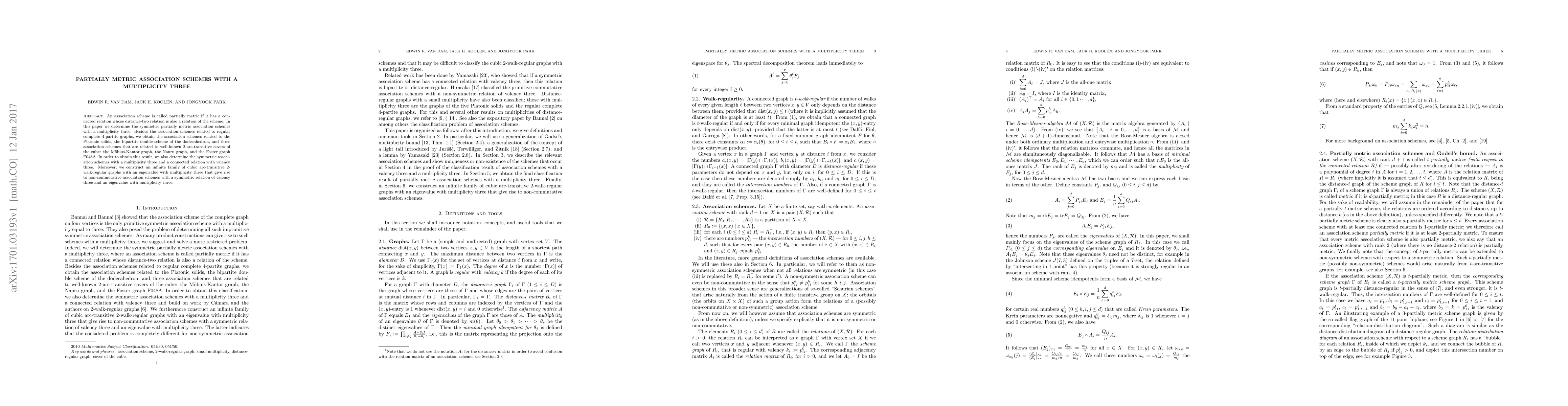 This paper identifies symmetric partially metric association schemes with a multiplicity three, including those related to regular complete $4$-partite graphs, Platonic solids, and specific $2$-arc-transitive covers of the cube. It also constructs an infinite family of cubic arc-transitive $2$-walk-regular graphs that generate non-commutative association schemes.