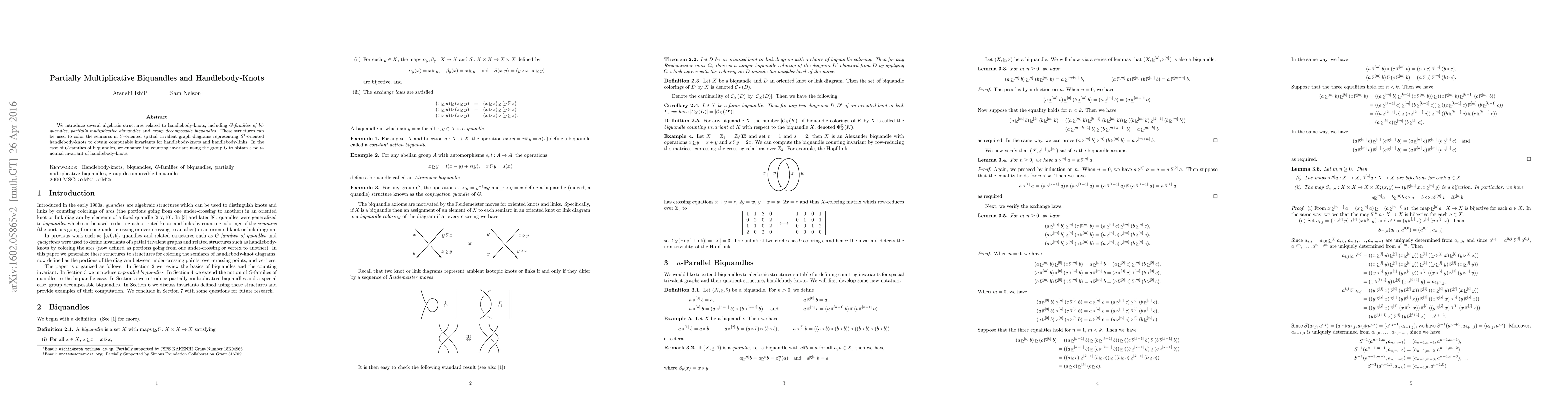 The paper introduces algebraic structures such as partially multiplicative biquandles and $G$-families of biquandles to derive computable invariants for handlebody-knots and links, with enhanced polynomial invariants utilizing group $G$ for handlebody-knots. These structures enable the coloring of semiarcs in spatial trivalent graph diagrams.