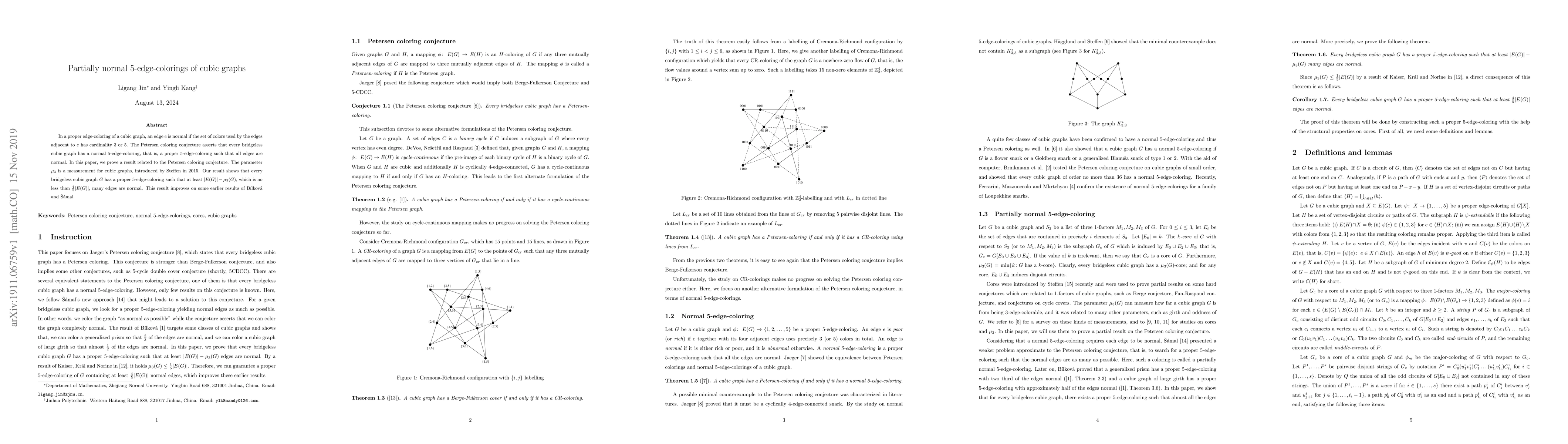 This paper proves that every bridgeless cubic graph has a proper 5-edge-coloring with at least $\frac{4}{5}|E(G)|$ normal edges, improving upon earlier results and contributing to the investigation of the Petersen coloring conjecture.