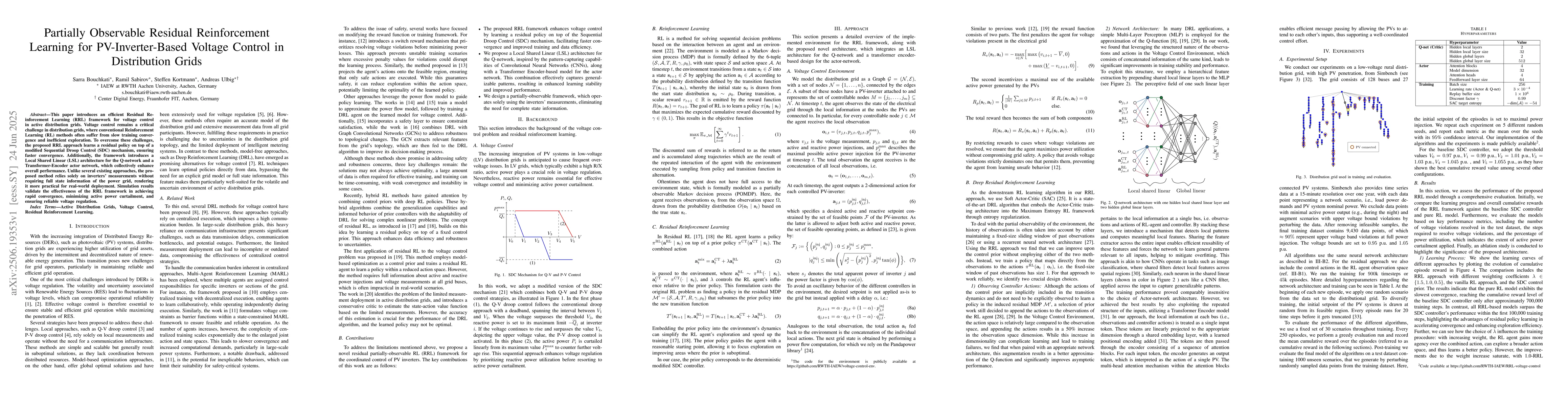 This paper introduces an efficient Residual Reinforcement Learning (RRL) framework for voltage control in active distribution grids. Voltage control remains a critical challenge in distribution grids, where conventional Reinforcement Learning (RL) methods often suffer from slow training convergence and inefficient exploration. To overcome these challenges, the proposed RRL approach learns a residual policy on top of a modified Sequential Droop Control (SDC) mechanism, ensuring faster convergence. Additionally, the framework introduces a Local Shared Linear (LSL) architecture for the Q-network and a Transformer-Encoder actor network, which collectively enhance overall performance. Unlike several existing approaches, the proposed method relies solely on inverters' measurements without requiring full state information of the power grid, rendering it more practical for real-world deployment. Simulation results validate the effectiveness of the RRL framework in achieving rapid convergence, minimizing active power curtailment, and ensuring reliable voltage regulation.