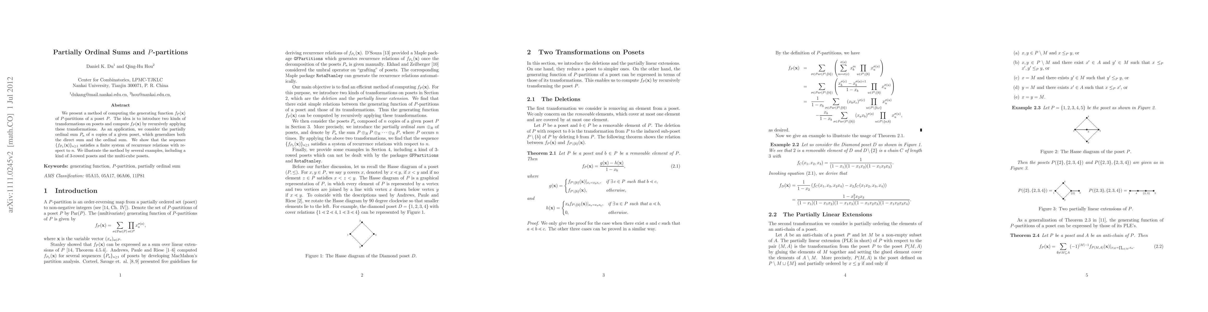 This paper introduces a method to compute generating functions for $P$-partitions of posets using recursive transformations. It also explores partially ordinal sums of posets, showing that their generating functions satisfy a finite recurrence relation, illustrated with examples of specific posets.