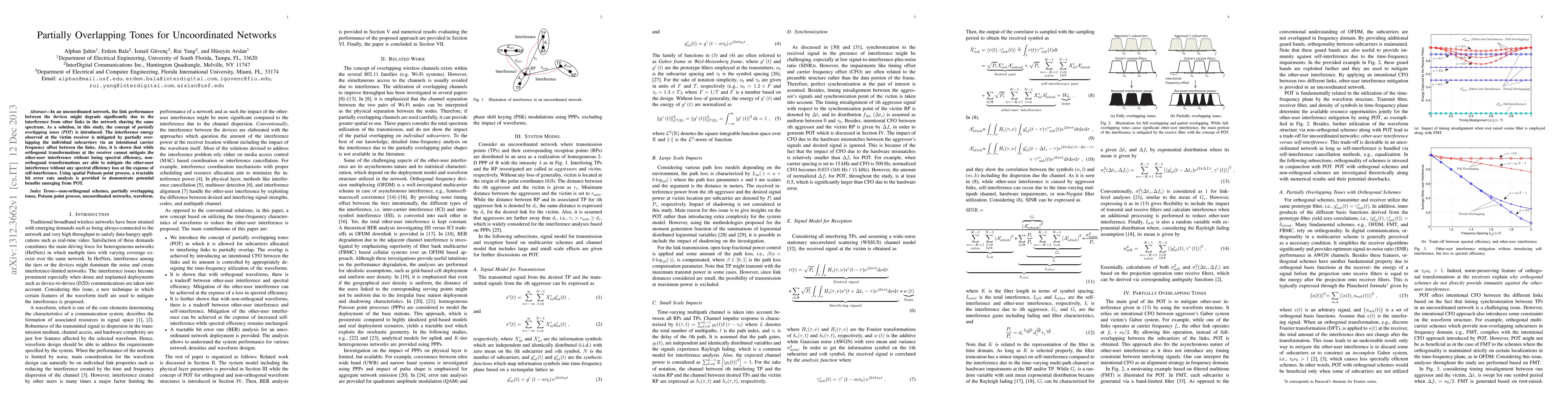 In an uncoordinated network, the link performance between the devices might degrade significantly due to the interference from other links in the network sharing the same spectrum. As a solution, in this study, the concept of partially overlapping tones (POT) is introduced. The interference energy observed at the victim receiver is mitigated by partially overlapping the individual subcarriers via an intentional carrier frequency offset between the links. Also, it is shown that while orthogonal transformations at the receiver cannot mitigate the other-user interference without losing spectral efficiency, non-orthogonal transformations are able to mitigate the other-user interference without any spectral efficiency loss at the expense of self-interference. Using spatial Poisson point process, a tractable bit error rate analysis is provided to demonstrate potential benefits emerging from POT.
