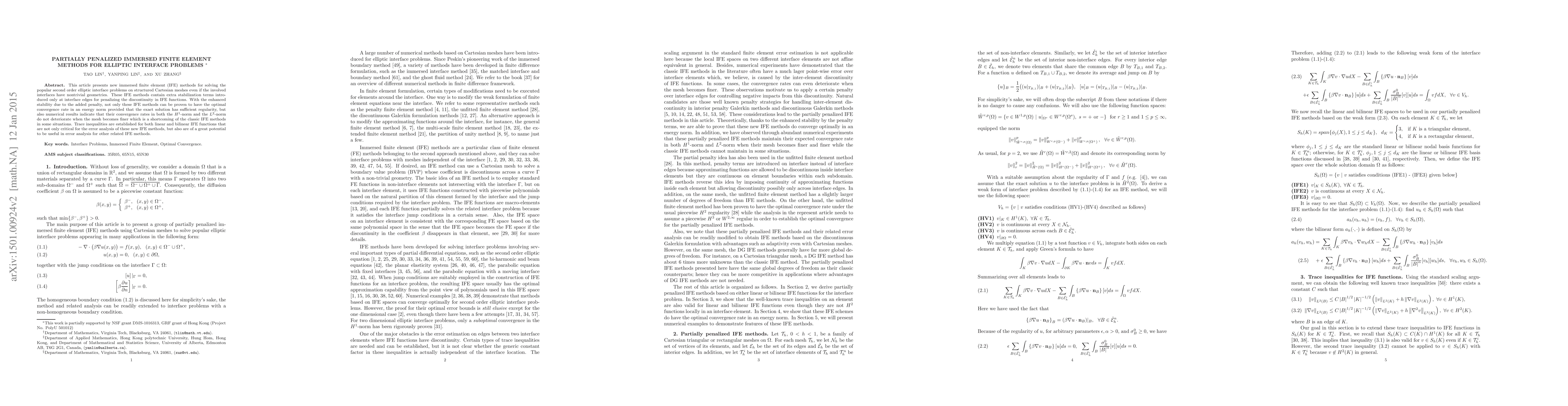 This paper introduces partially penalized immersed finite element methods for elliptic interface problems, providing enhanced stability and optimal convergence rates, especially when mesh is refined, along with trace inequalities for linear and bilinear functions crucial for error analysis.