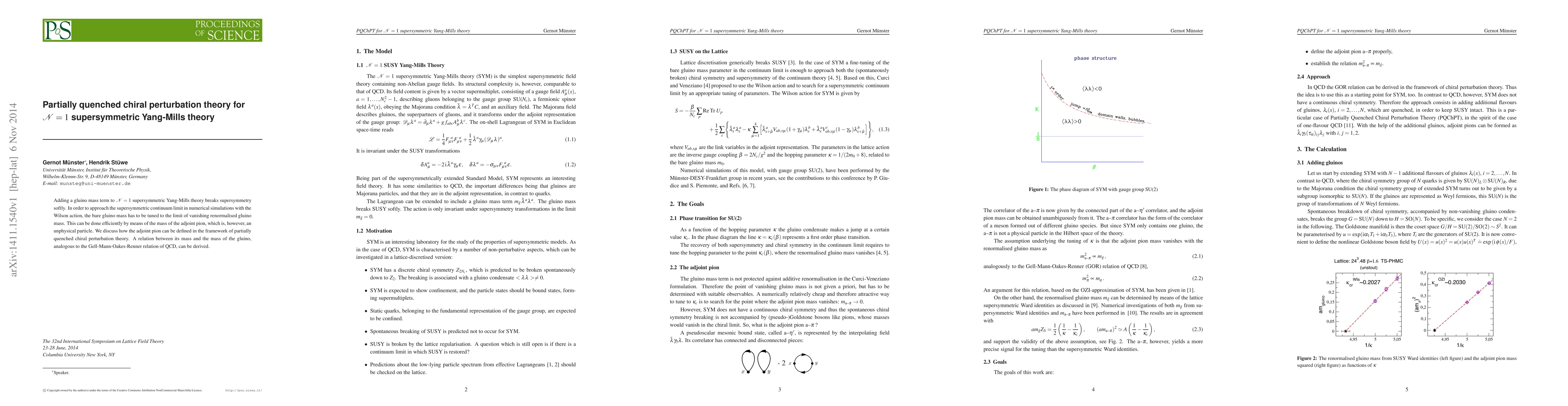 This paper explores partially quenched chiral perturbation theory to define the adjoint pion in N=1 supersymmetric Yang-Mills theory with a soft supersymmetry breaking gluino mass. It derives a relation analogous to QCD's Gell-Mann-Oakes-Renner relation to efficiently tune the bare gluino mass for numerical simulations.
