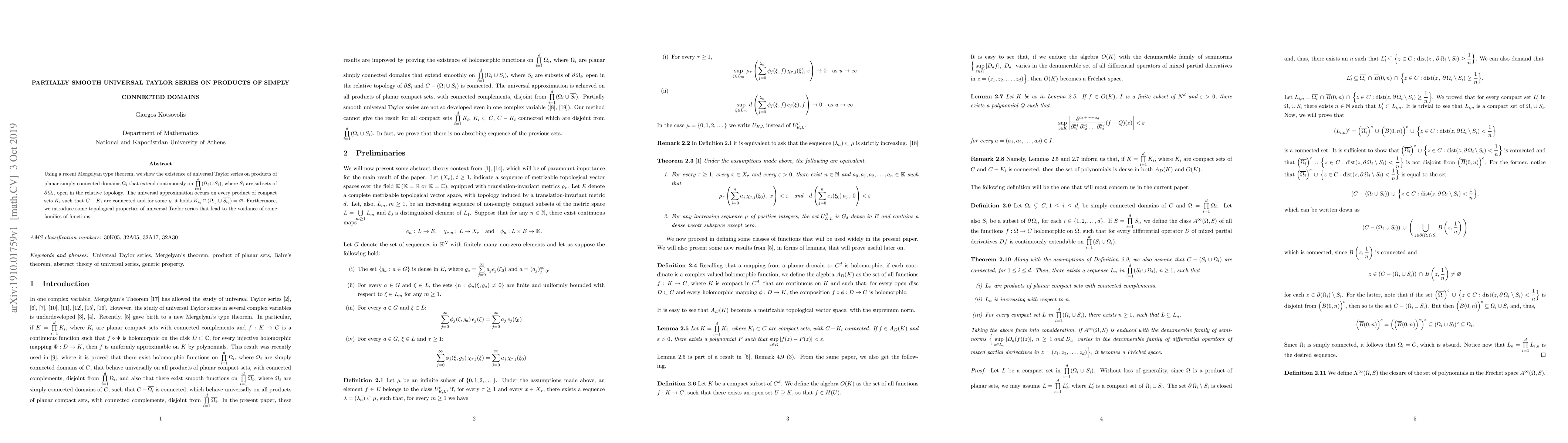 Summary: This paper demonstrates the existence of universal Taylor series on products of planar simply connected domains using a Mergelyan type theorem, ensuring continuous extension to the product of domain unions and their boundary subsets. It also introduces topological properties that help avoid certain families of functions.