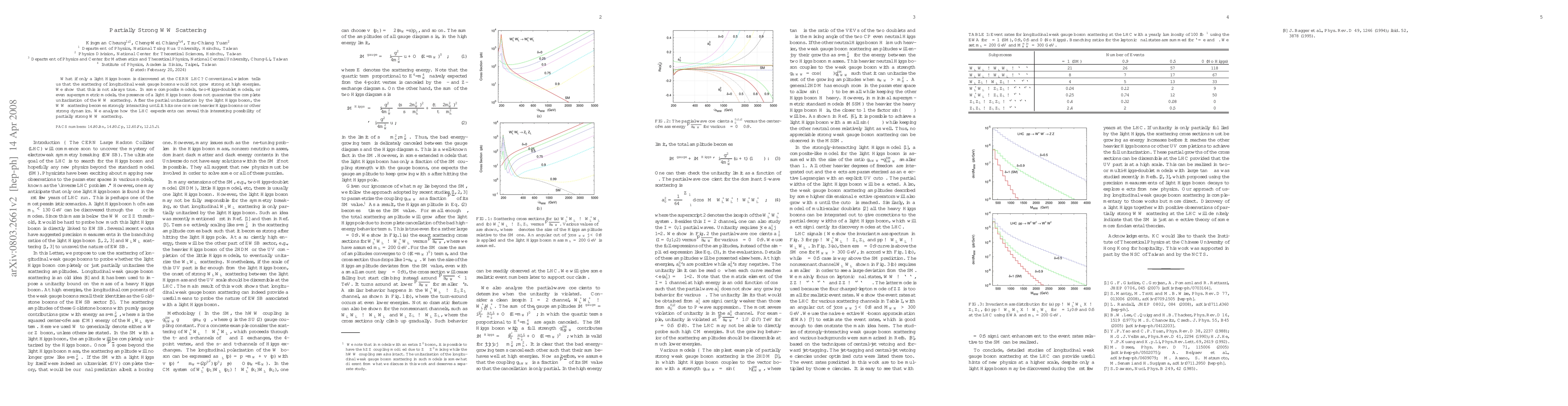 This paper explores the possibility that even with a light Higgs boson, the scattering of longitudinal weak gauge bosons ($WW$ scattering) can become strongly interacting at high energies in certain composite, two-Higgs-doublet, or supersymmetric models. The study suggests that LHC experiments could uncover this partially strong $WW$ scattering scenario.
