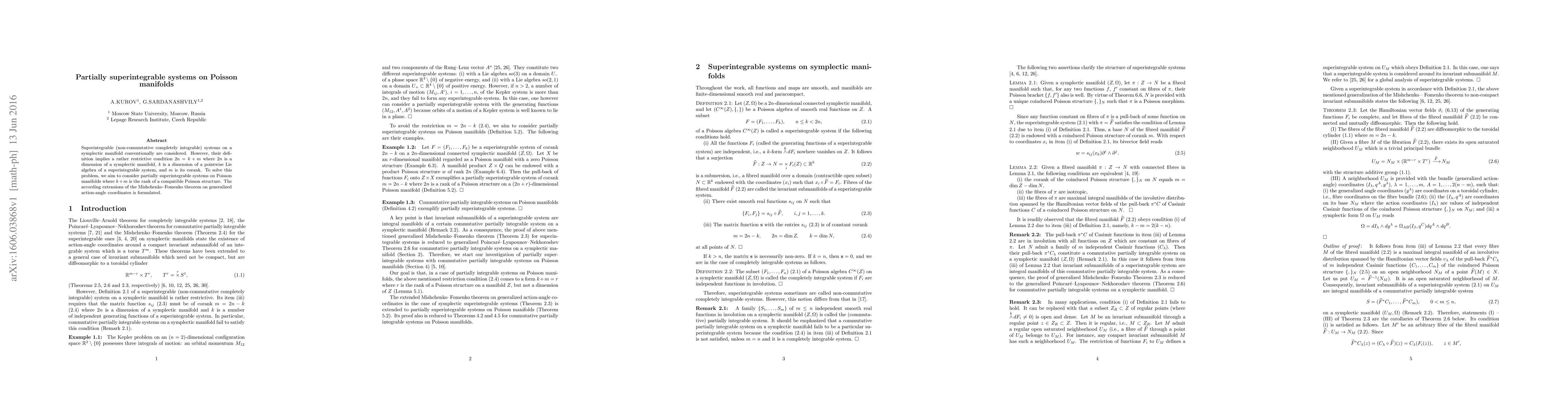 This paper explores partially superintegrable systems on Poisson manifolds, extending the conventional definition that requires a restrictive condition. It proposes a new framework where k+m equals the rank of a compatible Poisson structure, and formulates extensions of the Mishchenko-Fomenko theorem for generalized action-angle coordinates.