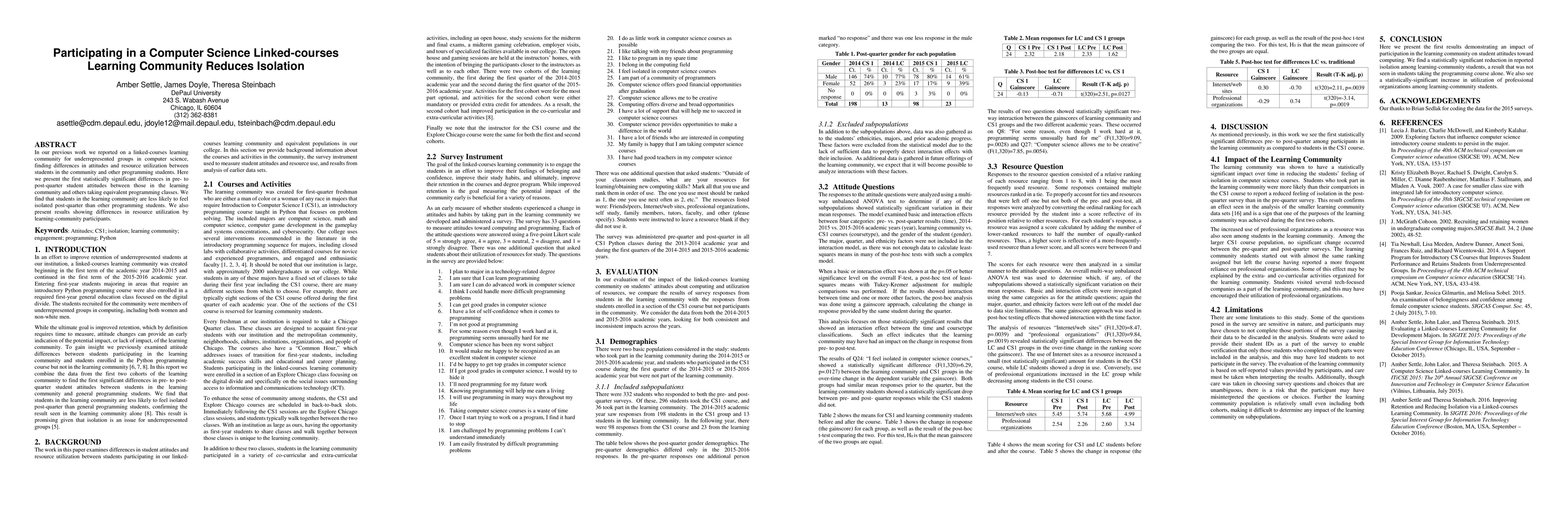 This study reveals that participation in a computer science linked-courses learning community significantly reduces feelings of isolation among underrepresented students compared to other programming students. Additionally, it highlights differences in resource utilization among community members.