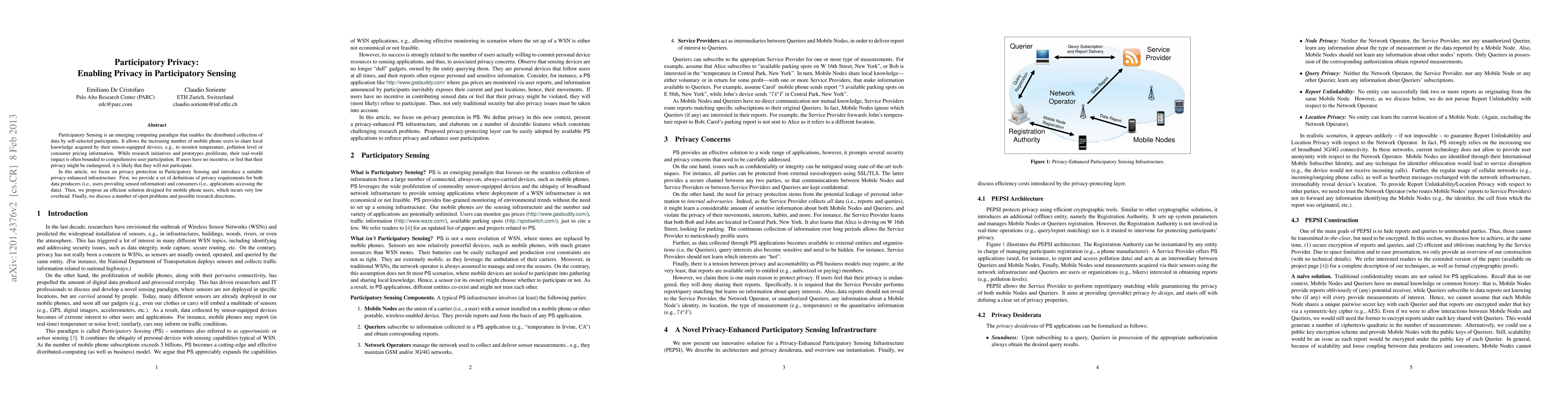 This paper explores privacy protection in Participatory Sensing, proposing a low-overhead infrastructure to enhance privacy for mobile users. It defines privacy requirements for data producers and consumers, and discusses open problems for future research.