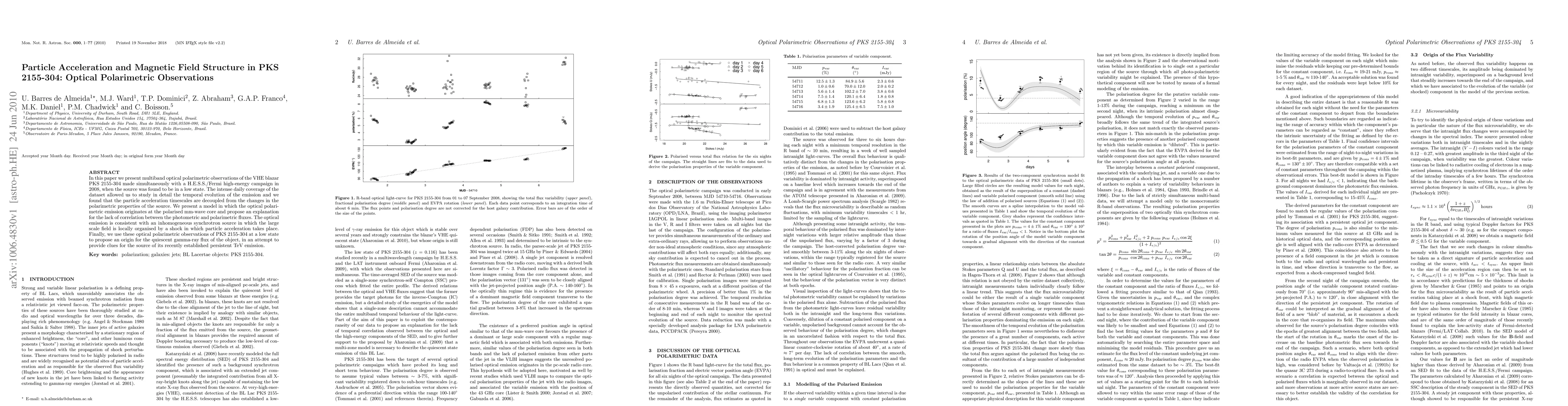 In this paper we present multiband optical polarimetric observations of the VHE blazar PKS 2155-304 made simultaneously with a H.E.S.S./Fermi high-energy campaign in 2008, when the source was found to be in a low state. The intense daily coverage of the dataset allowed us to study in detail the temporal evolution of the emission and we found that the particle acceleration timescales are decoupled from the changes in the polarimetric properties of the source. We present a model in which the optical polarimetric emission originates at the polarised mm-wave core and propose an explanation for the lack of correlation between the photometric and polarimetric fluxes. The optical emission is consistent with an inhomogeneous synchrotron source in which the large scale field is locally organised by a shock in which particle acceleration takes place. Finally, we use these optical polarimetric observations of PKS 2155-304 at a low state to propose an origin for the quiescent gamma-ray flux of the object, in an attempt to provide clues for the source of its recently established persistent TeV emission.