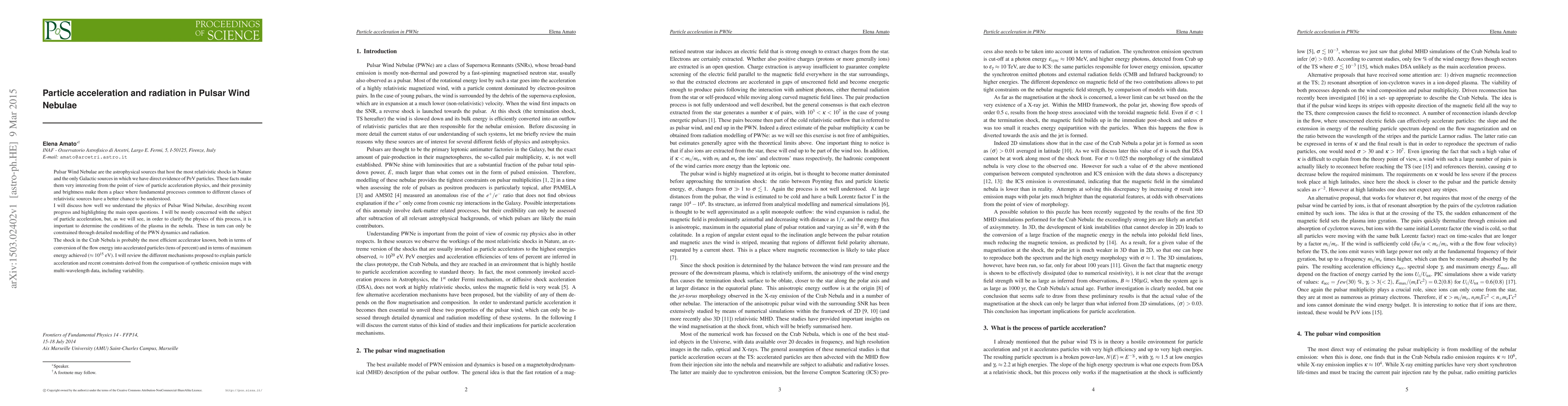 This paper reviews the current understanding of particle acceleration and radiation in Pulsar Wind Nebulae, focusing on the Crab Nebula as a prime example. It discusses the mechanisms proposed for particle acceleration and the constraints derived from multi-wavelength data comparisons, highlighting open questions and the need for detailed modeling of PWN dynamics and radiation.