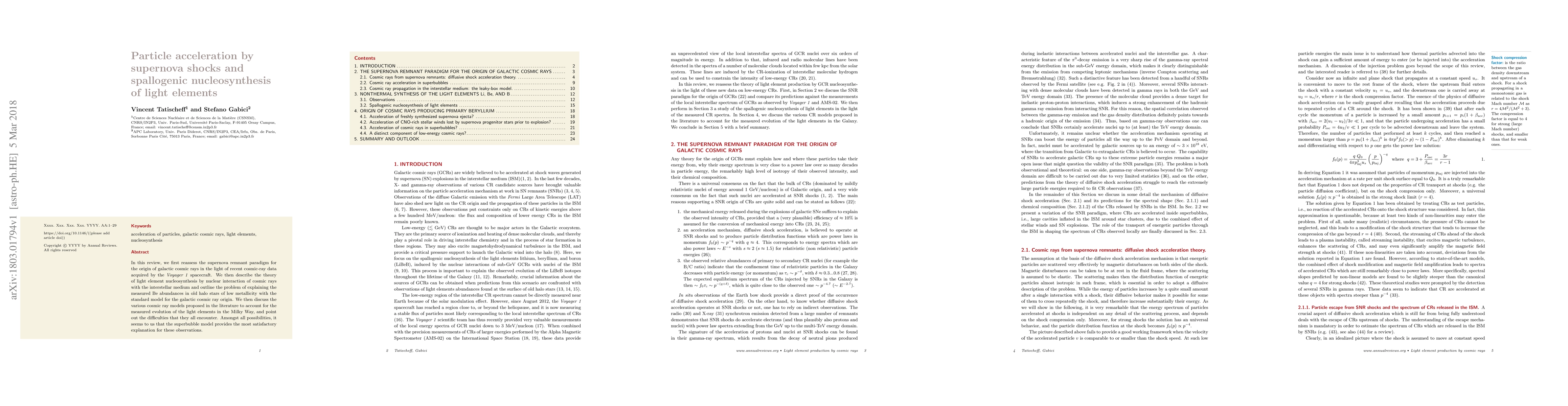 This paper reviews the supernova remnant paradigm for cosmic ray origin, challenging it with Voyager 1 data. It highlights difficulties in explaining Be abundances in low metallicity stars and suggests the superbubble model as a more satisfactory solution for these cosmic ray-related light element nucleosynthesis issues.