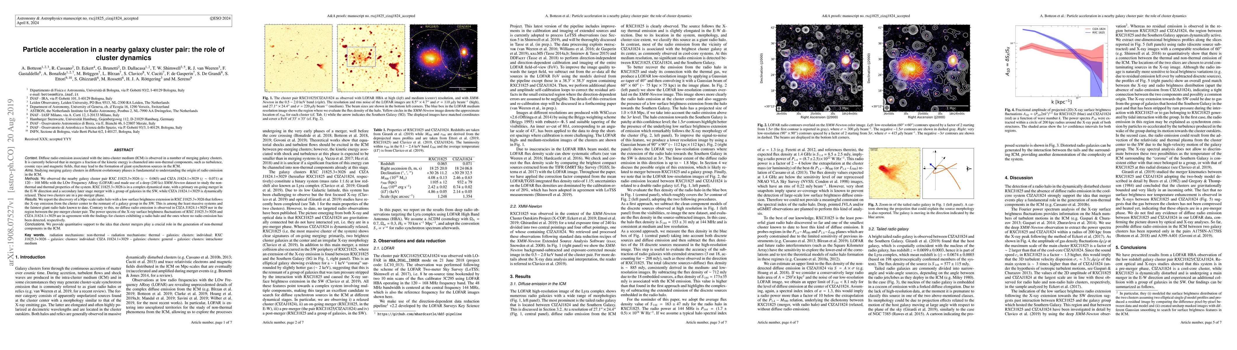 Researchers studied a galaxy cluster pair and found that one of them has a faint giant radio halo, while the other does not, suggesting that cluster mergers play a key role in generating non-thermal components in the intra-cluster medium.