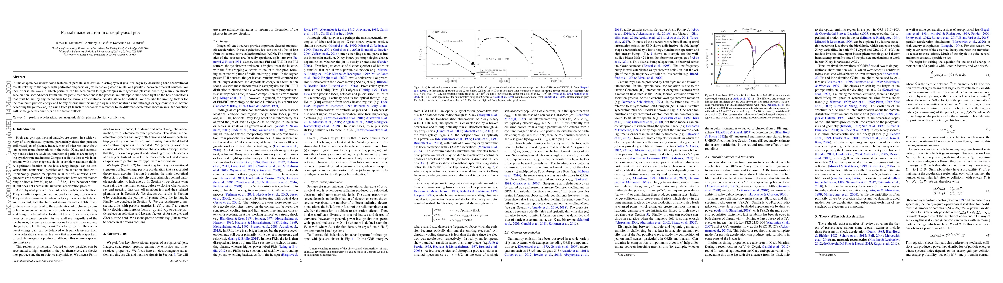 This paper reviews particle acceleration in astrophysical jets, emphasizing observational results and mechanisms like shock acceleration, second-order Fermi processes, and magnetic reconnection. It discusses the maximum particle energy limits and the role of multimessenger signals, concluding with future research perspectives.