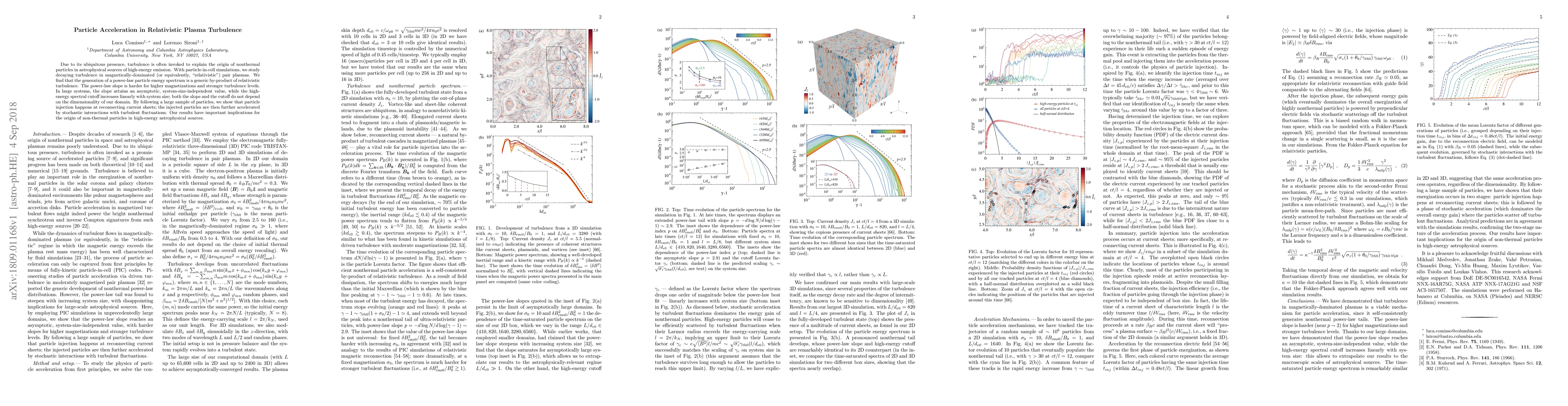 This paper uses particle-in-cell simulations to demonstrate that relativistic turbulence in pair plasmas naturally generates a power-law particle energy spectrum, with the spectrum's slope becoming harder under stronger turbulence and higher magnetizations. The findings suggest that non-thermal particles in high-energy astrophysical sources may originate from such turbulent processes.
