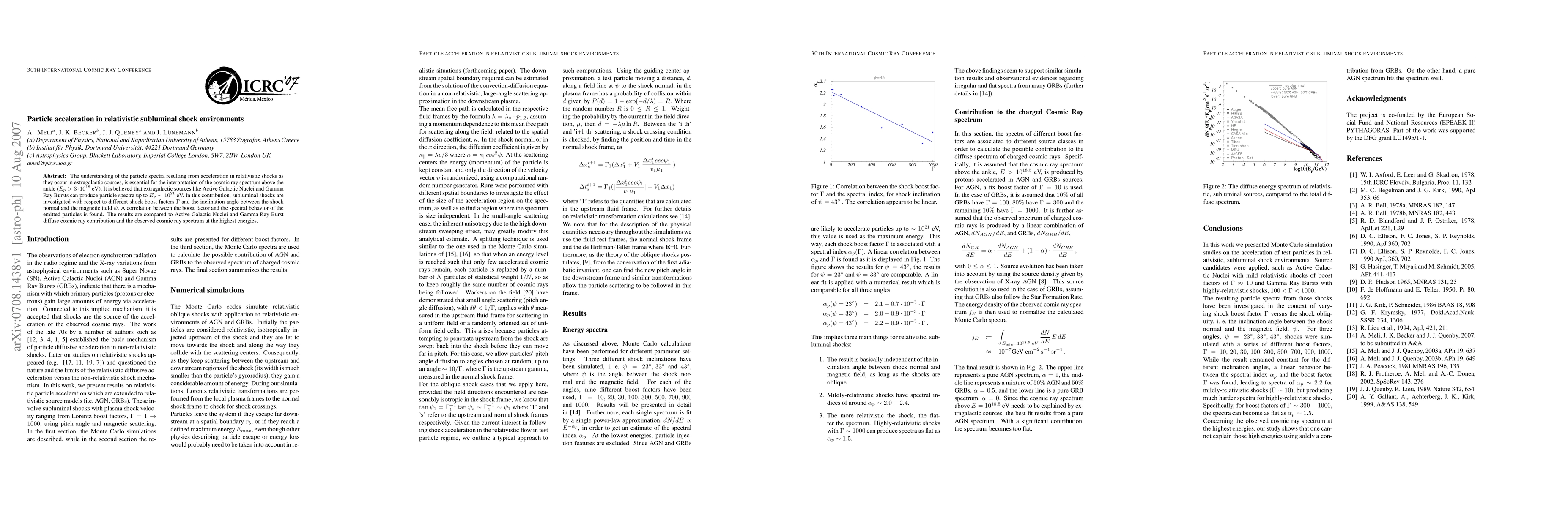The understanding of the particle spectra resulting from acceleration in relativistic shocks as they occur in extragalactic sources, is essential for the interpretation of the cosmic ray spectrum above the ankle ($E_p>3\cdot 10^{18}$ eV). It is believed that extragalactic sources like Active Galactic Nuclei and Gamma Ray Bursts can produce particle spectra up to $E_p\sim 10^{21}$ eV. In this contribution, subluminal shocks are investigated with respect to different shock boost factors $\Gamma$ and the inclination angle between the shock normal and the magnetic field $\psi$. A correlation between the boost factor and the spectral behavior of the emitted particles is found. The results are compared to Active Galactic Nuclei and Gamma Ray Burst diffuse cosmic ray contribution and the observed cosmic ray spectrum at the highest energies.